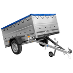 Nuovo rimorchio per auto GARDEN TRAILER 200 KIPP con ruotino d'appoggio, sovrasponde e telo piatto blu
