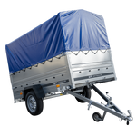 Rimorchio Garden Trailer 230 KIPP con ruotino di appoggio, sovrasponde e centina H-800 con telo blu