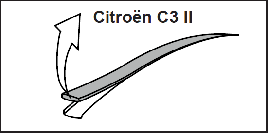 Nel caso della Citroën C3 II, i punti di fissaggio originali potrebbero essere nascosti sotto le modanature del tetto (senza fori nelle modanature). In questo caso, le modanature del tetto devono essere rimosse prima di installare il portapacchi.