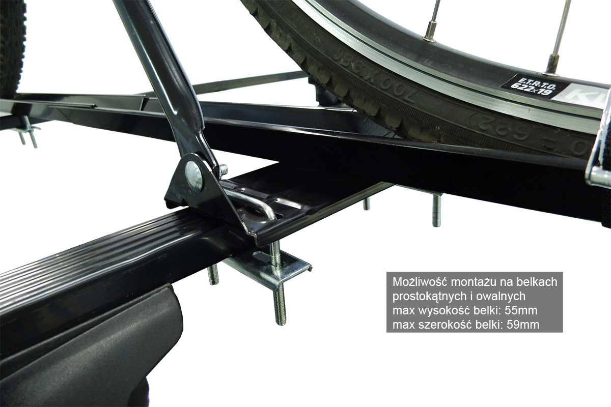 Il supporto si fissa alle barre portatutto tramite i morsetti (bulloni a U) inclusi, compatibili con barre (in alluminio e acciaio) larghe fino a 59 mm .