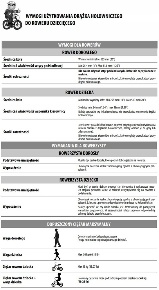 Peso della bici del bambino + peso del bambino | ![]() | Il peso trainato non deve superare in nessun caso i 45 kg (99,21 lb) . |