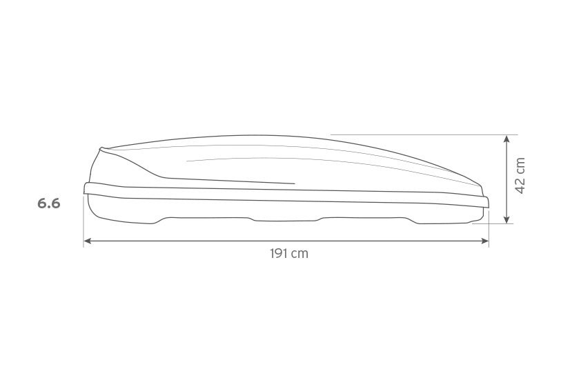 Il box da tetto Inter Pack Traxer 6.6 in nero (metallizzato) è una soluzione funzionale ed esteticamente gradevole per chi ha bisogno di spazio extra per i bagagli durante il viaggio. Con una capacità di 410 litri, è perfetto per vacanze, gite del fine settimana o gite in famiglia. La sua lunghezza esterna di 191 cm consente di trasportare sci lunghi fino a 185 cm , oltre a valigie, zaini e attrezzatura sportiva.