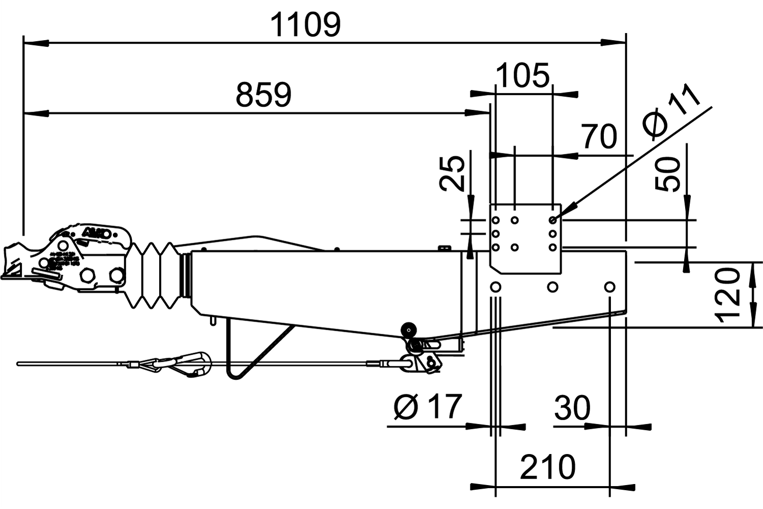 Dispositivo di inerzia AL-KO 2.8VB1 con gancio AK351 per rimorchio da 3500 kg con timone quadrato