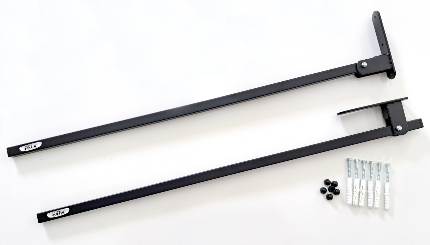 - Inter Pack Appen – Supporto da parete da 80 cm per box da tetto e altri oggetti (biciclette, sci, scale, tavole, portapacchi, tubi). Capacità di carico di 30 kg. Bracci pieghevoli per risparmiare spazio. Si monta su mattoni forati; non su cartongesso, pol