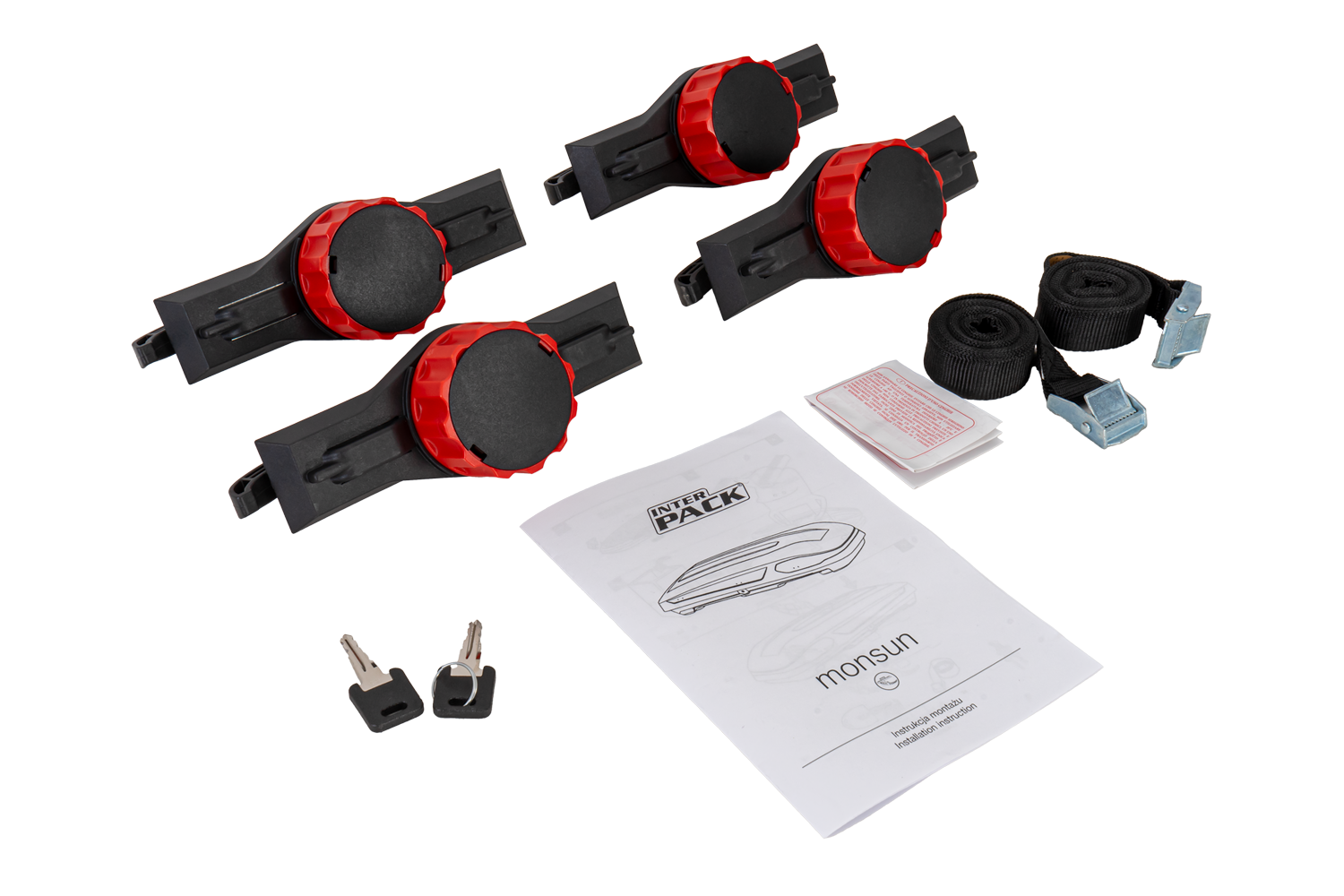 - Inter Pack Monsun M (antracite opaco) – capacità 470 l, lunghezza 186 cm, capacità di carico 75 kg, peso 16 kg. Può contenere valigie, borse, sci e snowboard fino a 165 cm. Sistema Rapid Fit con dinamometro, apertura bidirezionale e chiusura centralizzata