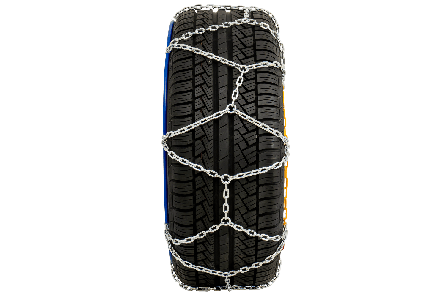 Le maglie spesse 12 mm sono realizzate in acciaio temprato di alta qualità, che ne aumenta la resistenza a crepe e abrasioni, prolungando al contempo la durata del set. Uno speciale motivo rombico (a diamante) migliora la stabilità di guida , riduce il rischio di slittamento laterale e migliora il controllo del veicolo in curva. Inoltre, la sezione quadrata delle maglie aderisce al manto stradale in modo ancora più efficace, garantendo una frenata sicura anche su superfici scivolose.