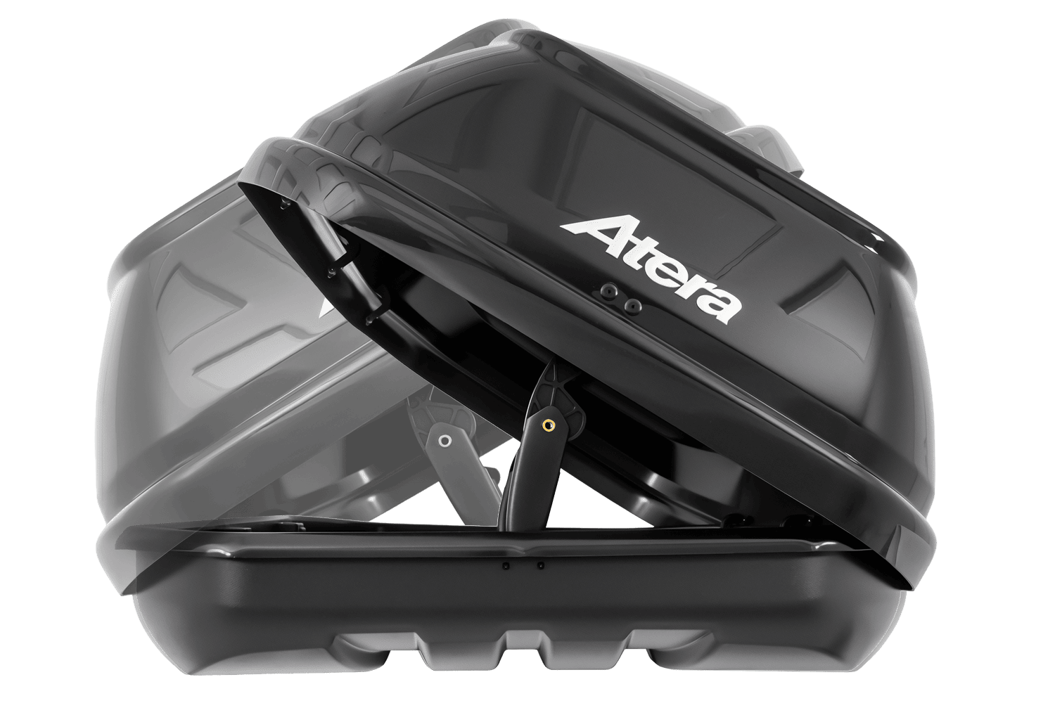 - Box da tetto Atera Casar L: capacità 420 l, lunghezza 191 cm, capacità di carico 75 kg, peso 17,5 kg. Può contenere valigie, borse, sci e snowboard fino a 185 cm. Apertura su entrambi i lati, Premium Fit con dinamometro e chiusura centralizzata Safe Guard