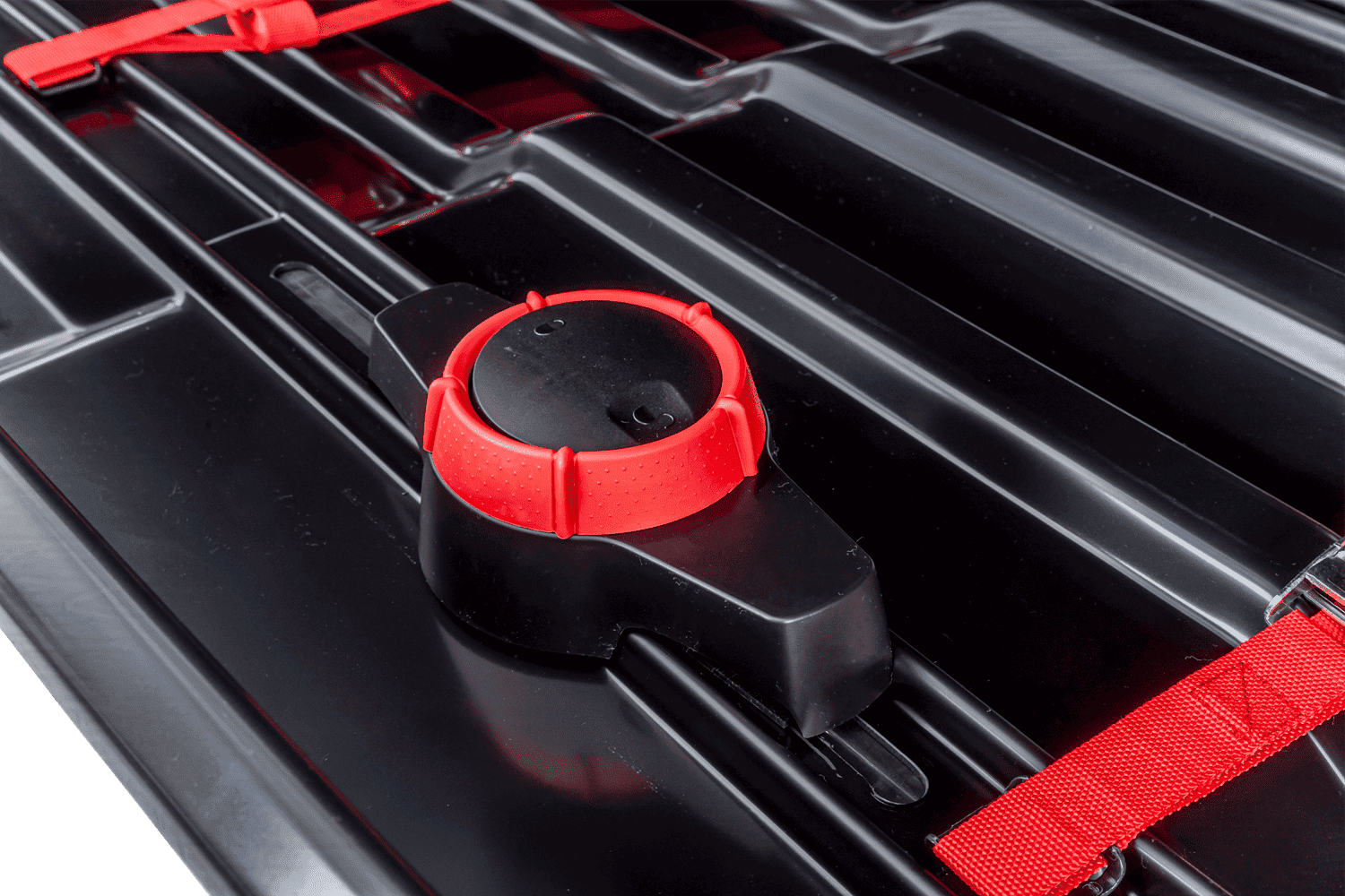 La struttura è realizzata in plastica ABS di alta qualità, resistente ai raggi UV e alle intemperie , rendendo il box affidabile per molte stagioni. La sicurezza è garantita dal sistema Safe Guard , che impedisce l'apertura accidentale del coperchio e ne segnala la corretta chiusura. Un sistema di chiusura centralizzata a tre punti protegge i bagagli e la chiave può essere rimossa solo quando il coperchio è correttamente chiuso.