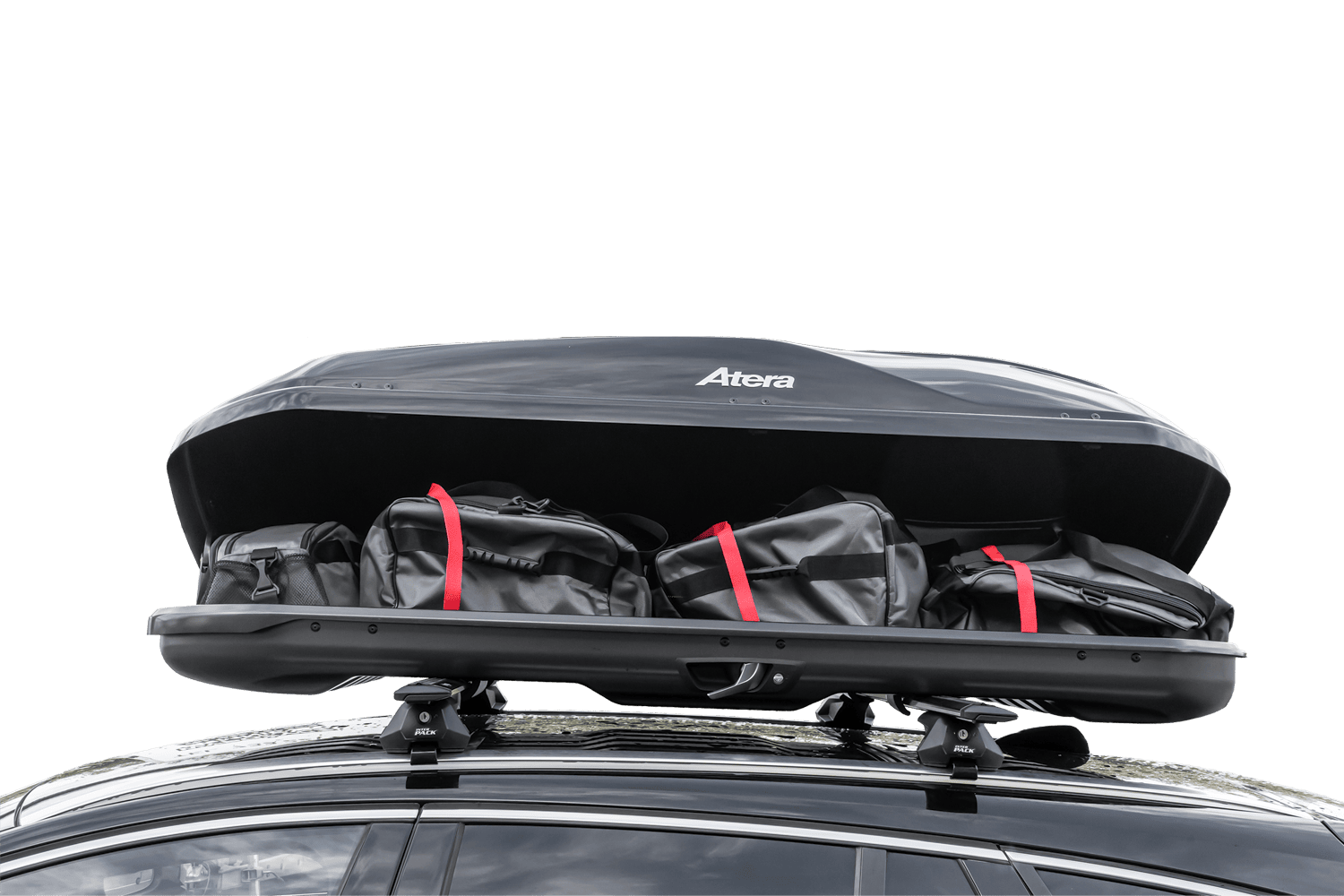 L'Atera Casar L è un moderno box da tetto perfetto sia per le vacanze più lunghe che per i viaggi quotidiani con bagagli più grandi. Con una capacità di 420 litri e una lunghezza di 191 cm , può trasportare valigie, passeggini, attrezzatura da trekking, nonché sci e snowboard lunghi fino a 185 cm .
