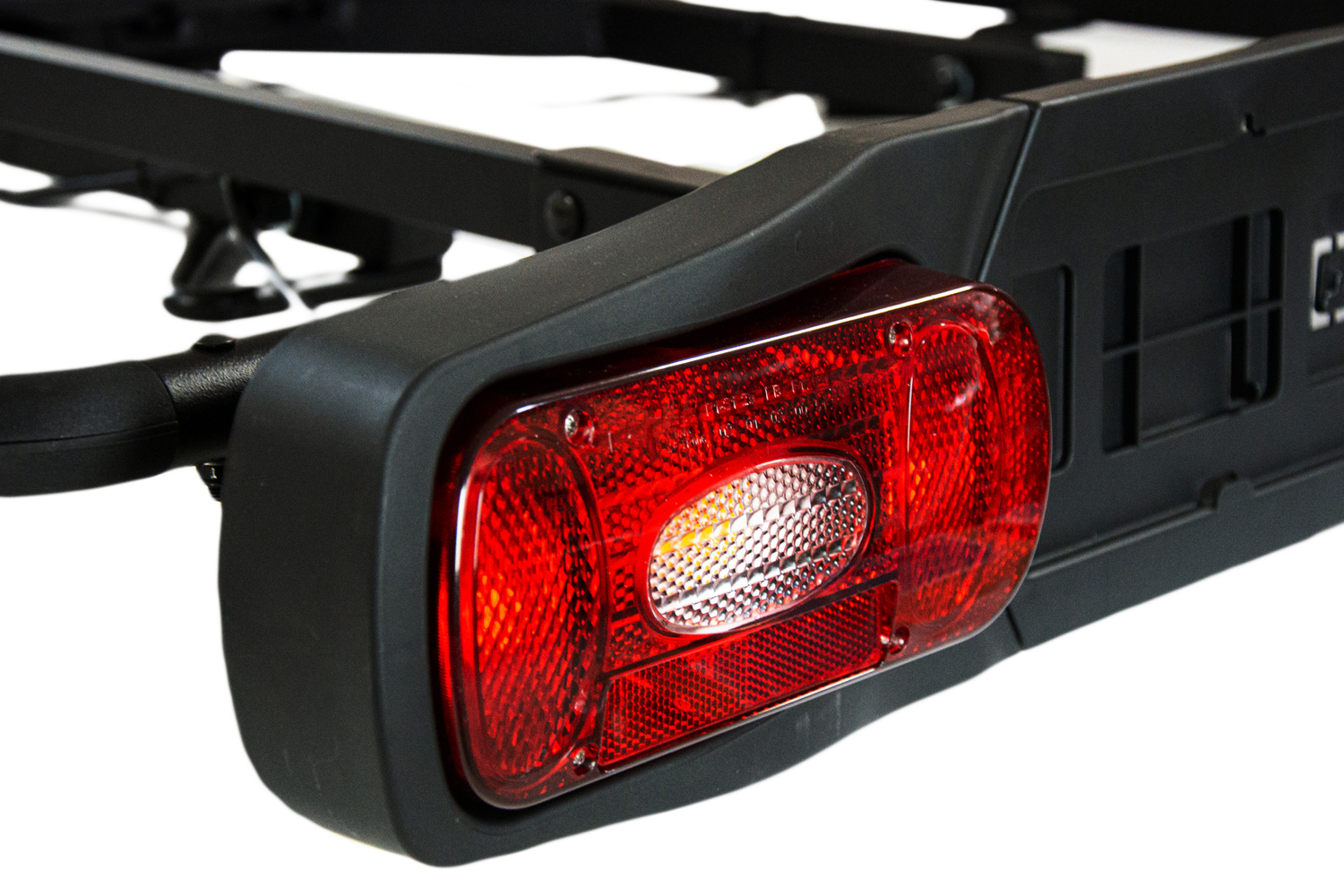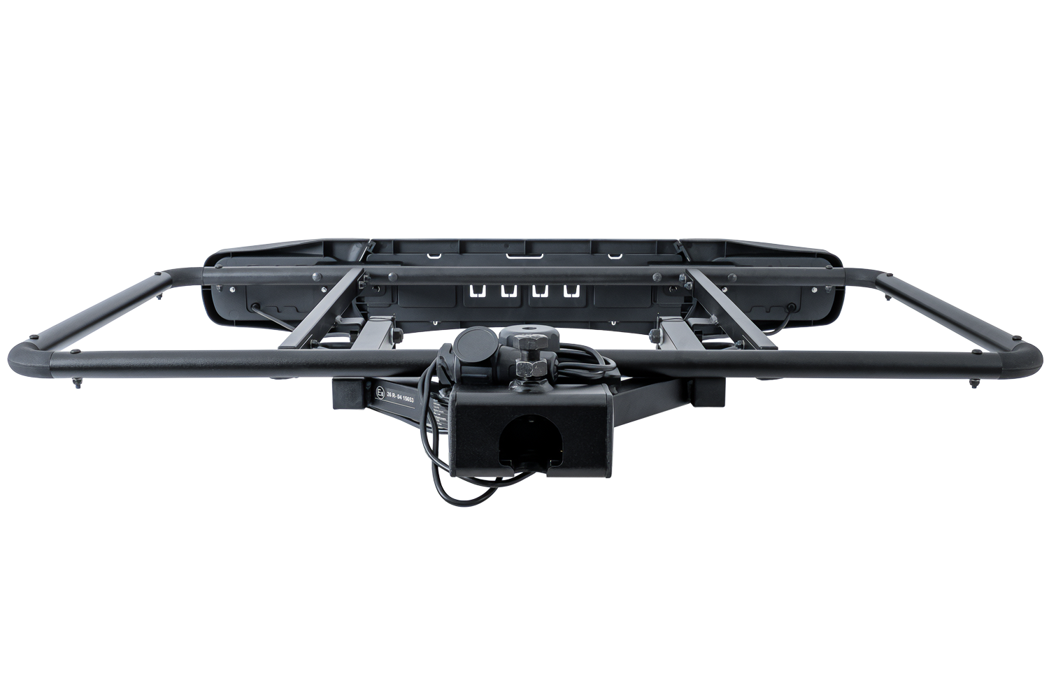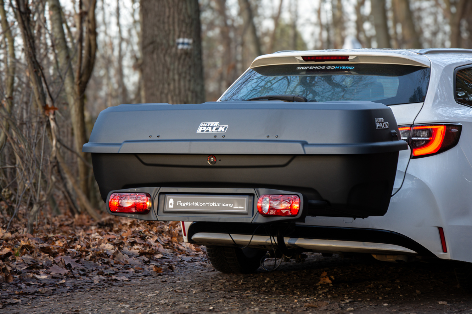 - La piattaforma per gancio traino Inter Pack Re-cargo è parte integrante del kit. Sulla piattaforma è possibile montare un box portaoggetti o un adattatore per il trasporto di biciclette. Può anche fungere da piattaforma portaoggetti separata.