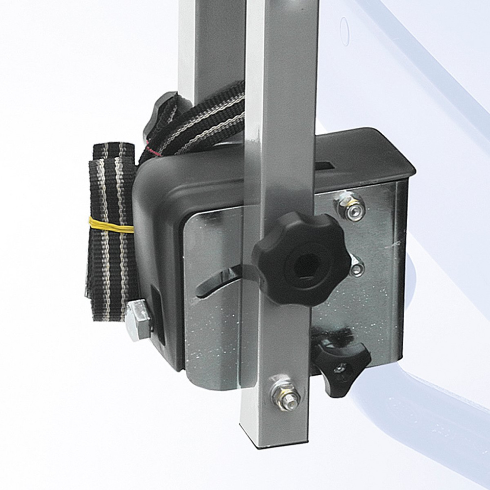 Il portabici non è dotato di luci aggiuntive; per una maggiore sicurezza, consigliamo di acquistare una barra luminosa con portatarga (detta anche "light plate"). Per le bici con telaio inclinato o da donna, è necessario un adattatore che imita un telaio "da uomo" e consente il trasporto sicuro della bici sul portabici Peruzzo Arezzo 4.