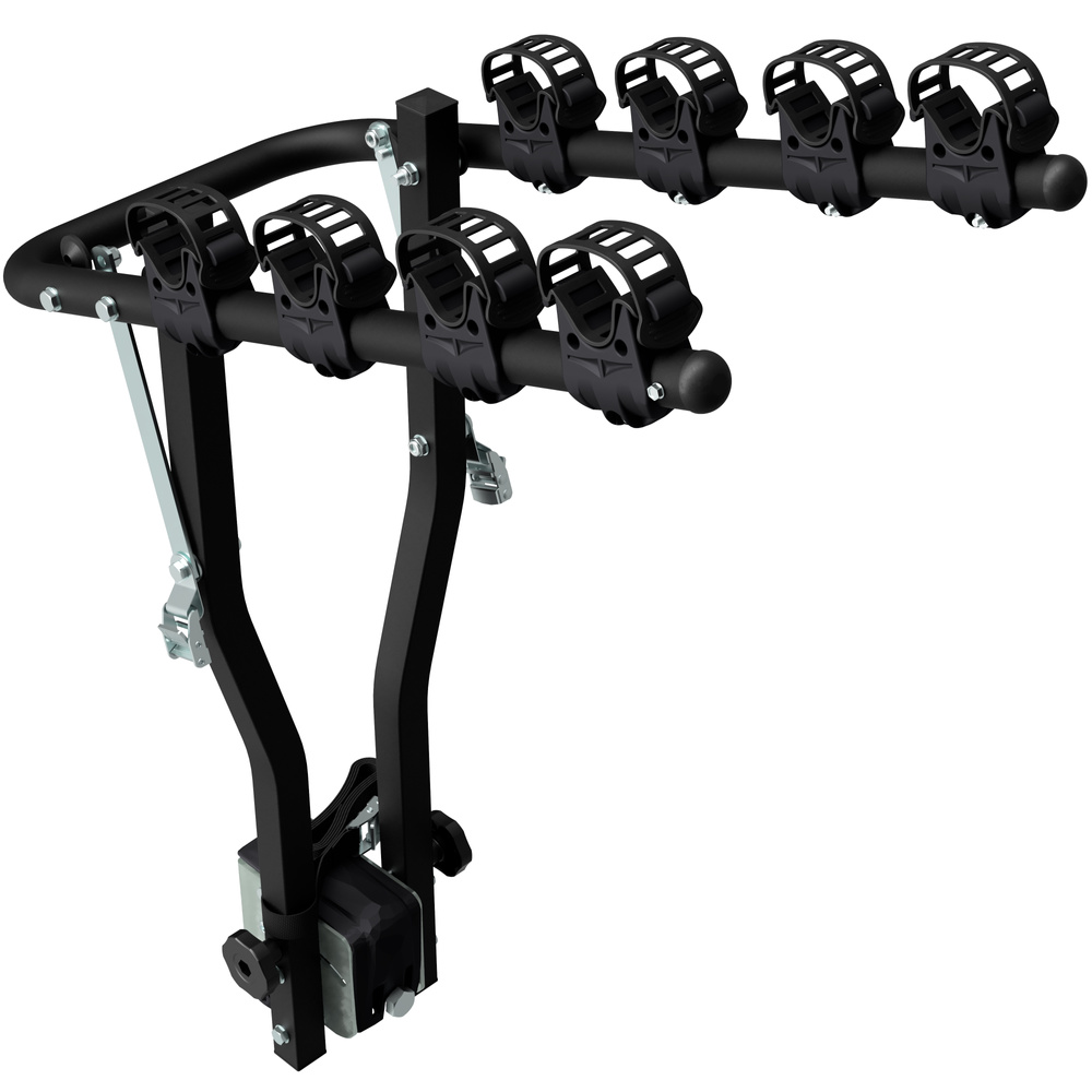 Sono incluse le cinghie per fissare le bici al portabici. I componenti a contatto con il telaio della bici sono realizzati in plastica o gomma per ridurre al minimo il rischio di danni. Il portabici da gancio traino è dotato di una funzione di inclinazione che consente un facile accesso al bagagliaio senza dover rimuovere le bici.