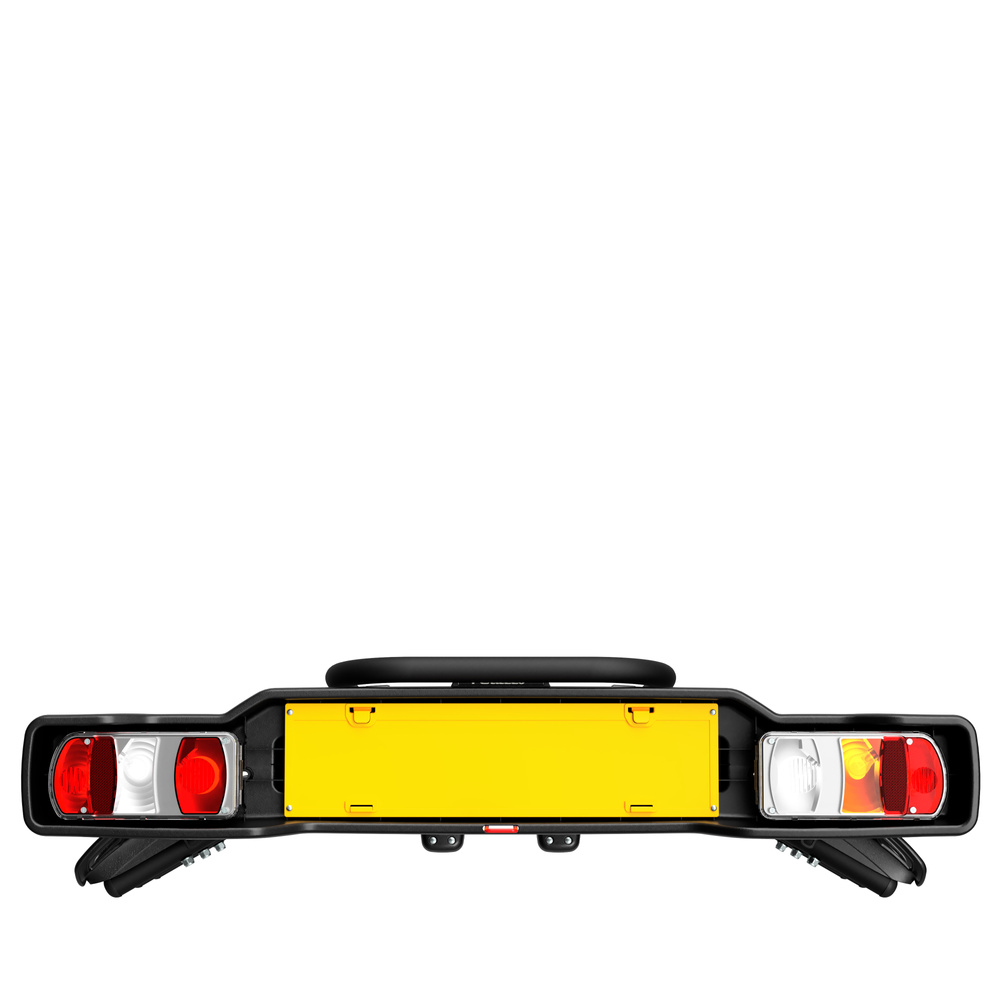 - Il portabici Parma è dotato di un sistema di montaggio sul gancio traino intuitivo e semplice. Per montare il portabici sul gancio traino, è sufficiente premere la leva.