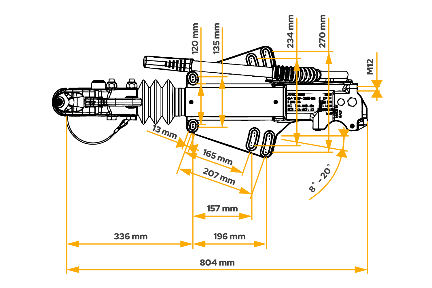 Il dispositivo offre due opzioni di montaggio: superiore o inferiore del timone , garantendo flessibilità nell'adattamento a diversi modelli di rimorchio. Tuttavia, si noti che l'altezza massima consentita del timone per il montaggio inferiore è di 100 mm. Questa versatilità di montaggio consente di ottimizzare la distribuzione del peso, adattarsi a diversi modelli di rimorchio e adattarsi a specifici requisiti applicativi, garantendo la sicurezza e l'efficienza del dispositivo in una varietà di applicazioni.