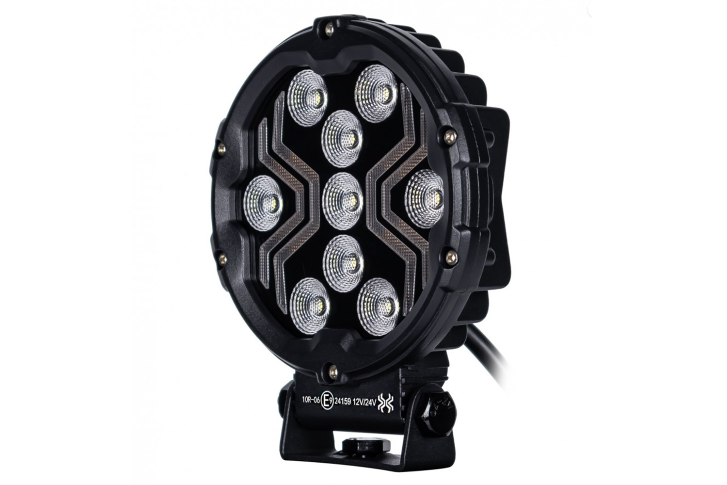 La lampada è dotata di nove LED da 18 W con una luminosità di 1700 lumen . Offre due funzioni di illuminazione: una potente luce da lavoro con lente focalizzata e una pratica striscia LED , che consente di adattare l'illuminazione a diverse attività e condizioni di lavoro. Offre un fascio di luce potente e preciso che illumina efficacemente l'area di lavoro, aumentando il comfort e la sicurezza. La robusta struttura in alluminio e policarbonato, nonché la protezione dall'inversione di polarità, garantiscono elevata durata, affidabilità e resistenza alle condizioni operative più difficili .