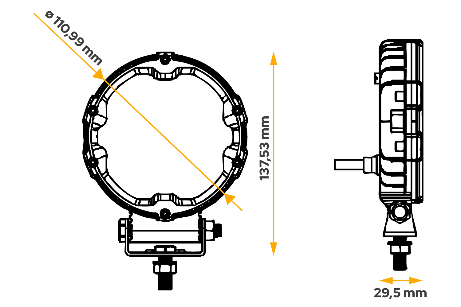 Le luci da lavoro con grado di protezione IP67 sono completamente resistenti alla polvere e all'immersione in acqua per brevi periodi (fino a 1 metro di profondità per un massimo di 30 minuti). Queste caratteristiche le rendono ideali per l'uso in ambienti difficili in cui sono presenti polvere, sporco e acqua, come veicoli commerciali, rimorchi, macchinari agricoli e attrezzature edili. Garantiscono affidabilità e durata anche negli ambienti di lavoro più impegnativi.