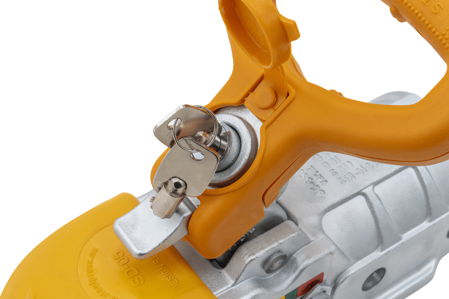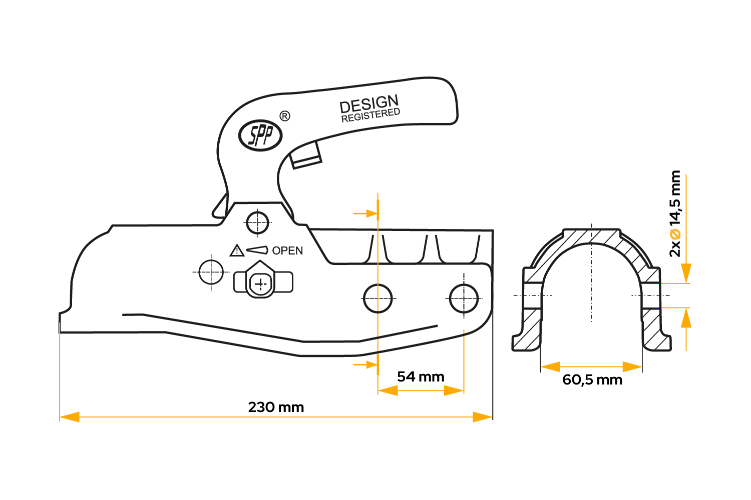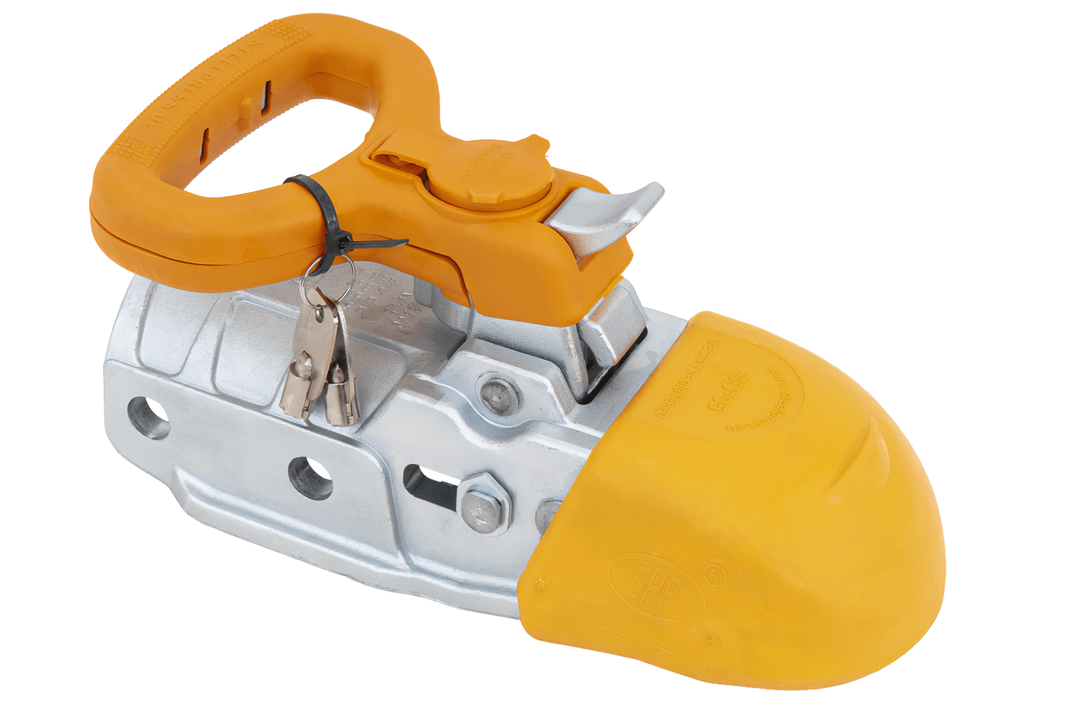 La testa del gancio ha un corpo pressofuso e la leva pressofusa con rivestimento in plastica è dotata di un antifurto rinforzato e di una presa per rimorchio . Il gancio ha una copertura SD in elastomero morbido e resistente che protegge la parte posteriore del veicolo dai graffi e le gambe dell'utente dagli urti durante le manovre. Questa soluzione unisce sicurezza e facilità d'uso .