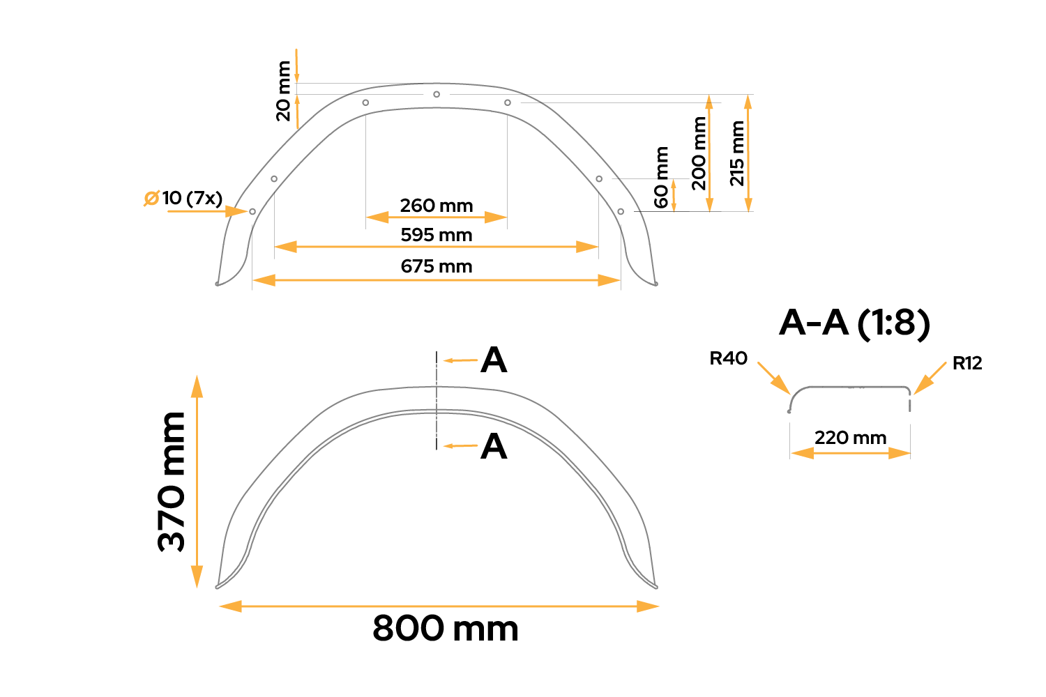 Il passaruota è realizzato in acciaio zincato di alta qualità , eccezionalmente resistente a condizioni meteorologiche come umidità, pioggia e gelo, nonché alla corrosione. Il processo di zincatura garantisce durevolezza e lunga durata del prodotto, rendendolo un elemento affidabile per l'attrezzatura del rimorchio.