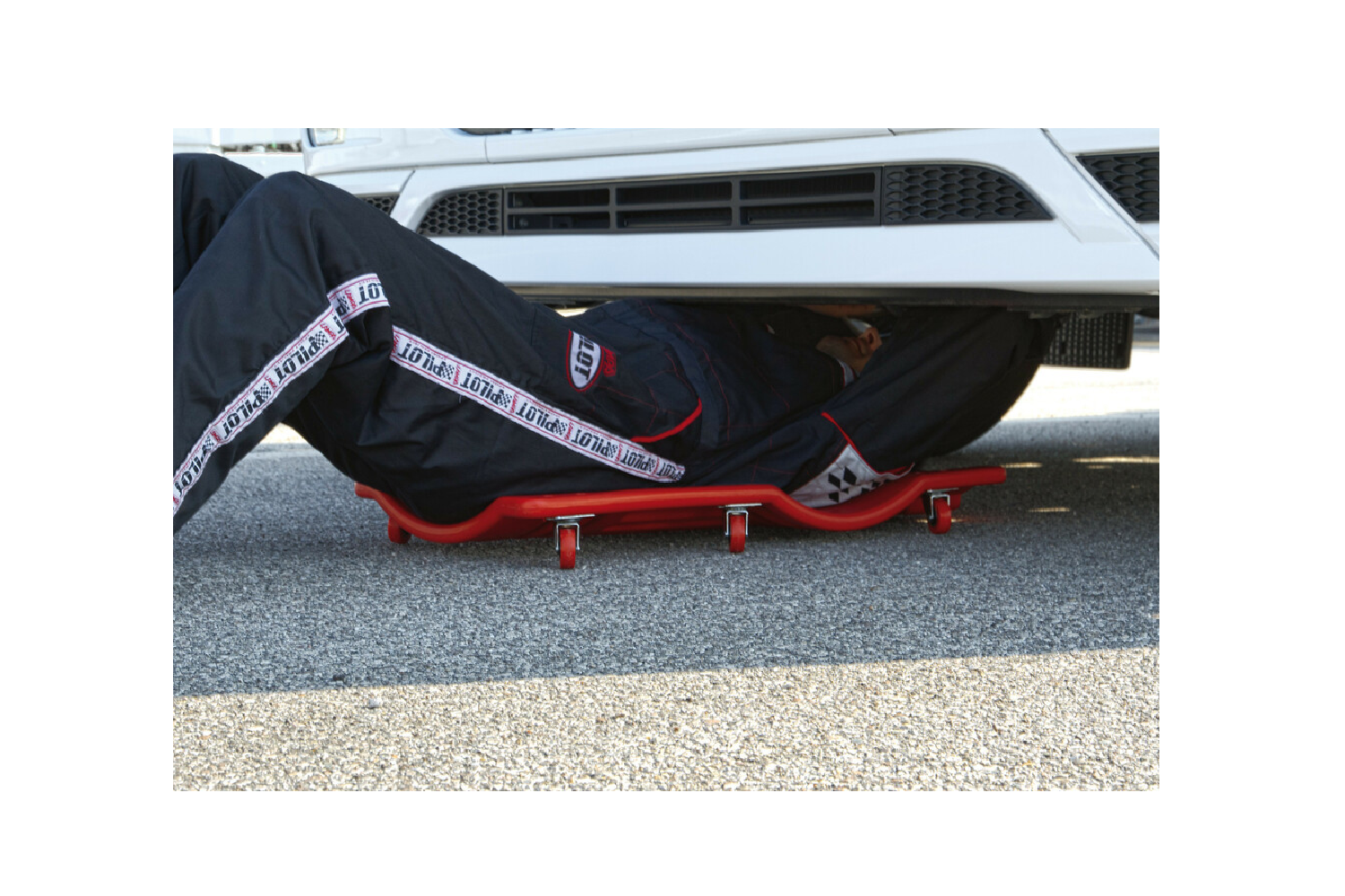 Il carrello da officina con poggiatesta è un carrello monoblocco in plastica rinforzata: rigido, leggero e resistente. Ha dimensioni compatte di 90 x 40 cm , un poggiatesta morbido e imbottito per il comfort del collo e sei ruote con cuscinetti a sfera per un movimento fluido e una facile manovrabilità sotto i veicoli. La superficie sagomata migliora l'ergonomia e la stabilità.