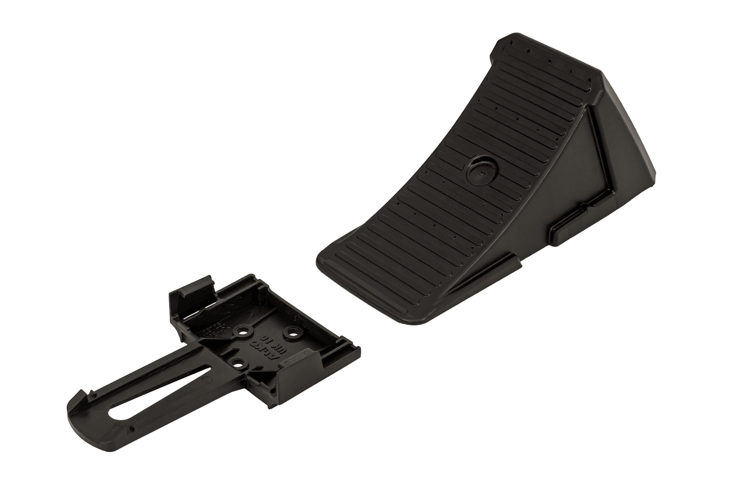 Il set include anche una staffa di montaggio UK 10 , che consente un fissaggio sicuro e permanente del cuneo direttamente alla carrozzeria del veicolo . La forma appositamente progettata della staffa si adatta perfettamente al cuneo, impedendone lo spostamento durante la guida. La sua struttura robusta e la resistenza agli agenti esterni garantiscono una lunga durata anche in caso di utilizzo intensivo. L'installazione della staffa è rapida e semplice , facilitando l'organizzazione dello spazio e consentendo l'accesso immediato al cuneo quando necessario.