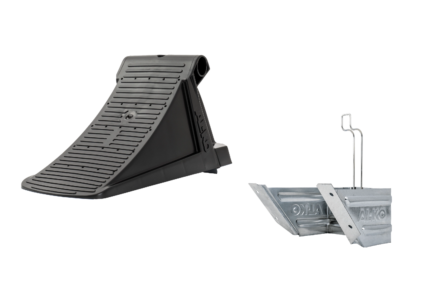 - Il cuneo UK 36 con staffa di montaggio AL-KO ha una capacità di carico di 1600 kg. Progettato per veicoli commerciali leggeri e furgoni, blocca le ruote, impedendo il movimento del veicolo e aumentando la sicurezza in sosta.