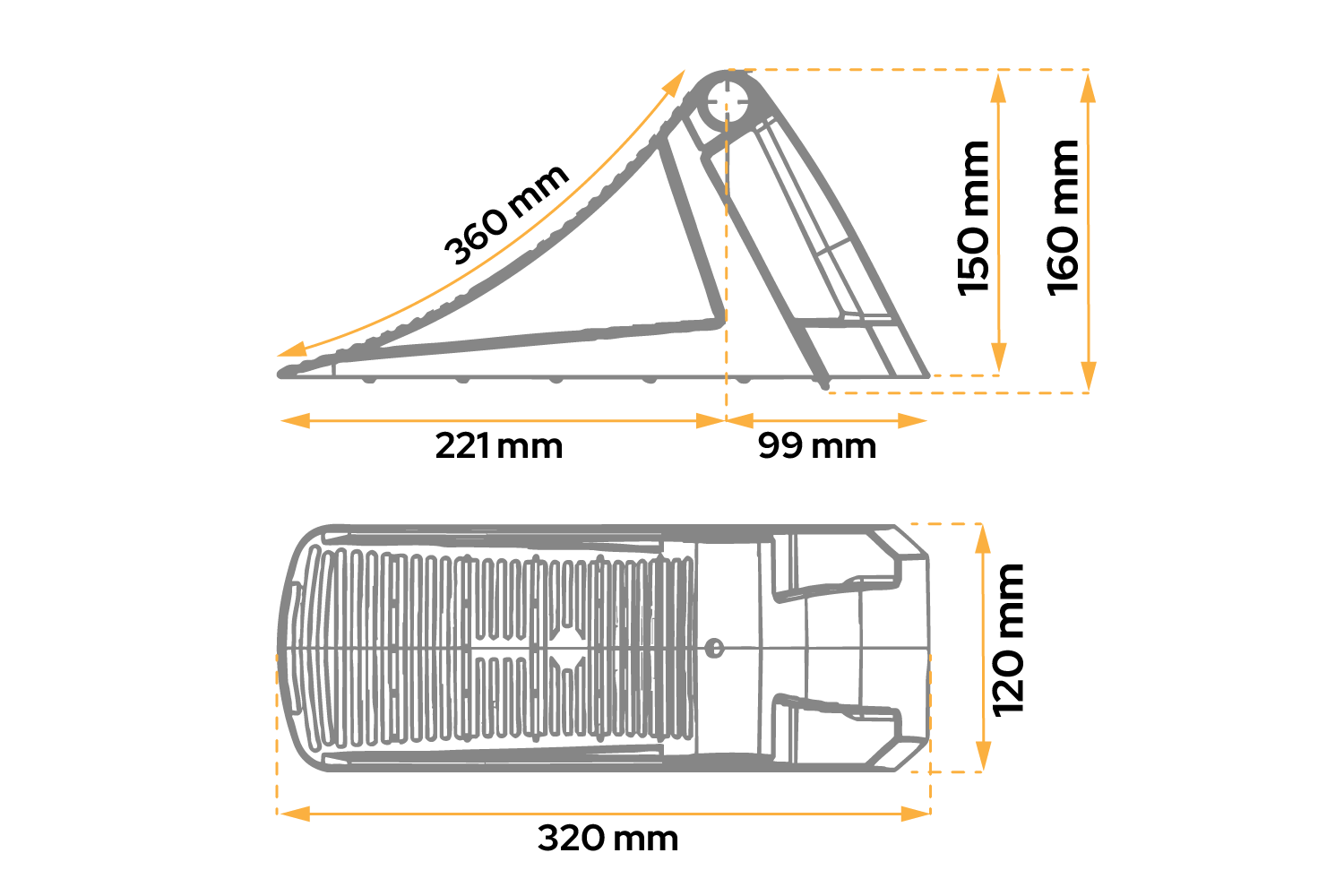 Il cuneo è realizzato in plastica resistente ma leggera , il che lo rende significativamente più leggero dei tradizionali cunei in metallo e ne facilita sia la movimentazione che il trasporto. Vanta un'elevata resistenza ai raggi UV e alle condizioni meteorologiche avverse, consentendo un utilizzo sicuro a temperature comprese tra -30°C e +60°C . Il suo design è conforme alla norma europea DIN 76051 , garantendo il rispetto di rigorosi standard di sicurezza. È una soluzione collaudata e affidabile per gli utenti professionali che si aspettano durata, funzionalità ed efficace protezione del veicolo in ogni condizione.