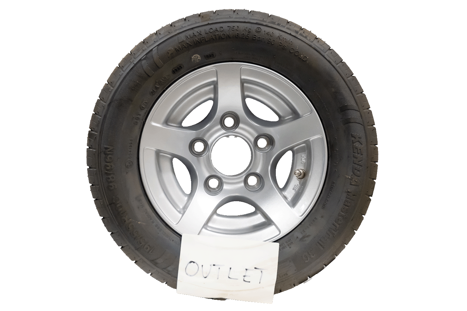 - OUTLET Ruota rinforzata progettata per rimorchi pesanti. Pneumatico KENDA 195/55 R10C che garantisce sicurezza e stabilità durante la guida. Cerchio in alluminio STARCO 6Jx10"H2 5X112 ET:-4. La capacità di carico massima della ruota è di 750 kg.