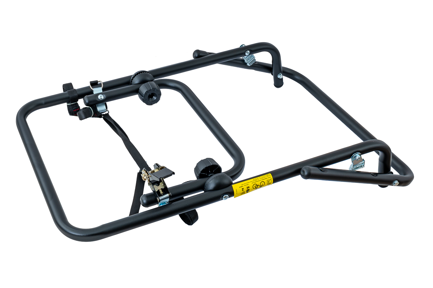 Questo portabici si monta direttamente sulla ruota di scorta , eliminando la necessità di praticare fori o di utilizzare adattatori aggiuntivi. Il sistema di montaggio è compatibile anche con veicoli con ruota di scorta posizionata sul lato del portellone posteriore: grazie al sistema di montaggio regolabile, il portabici può essere posizionato perfettamente.
