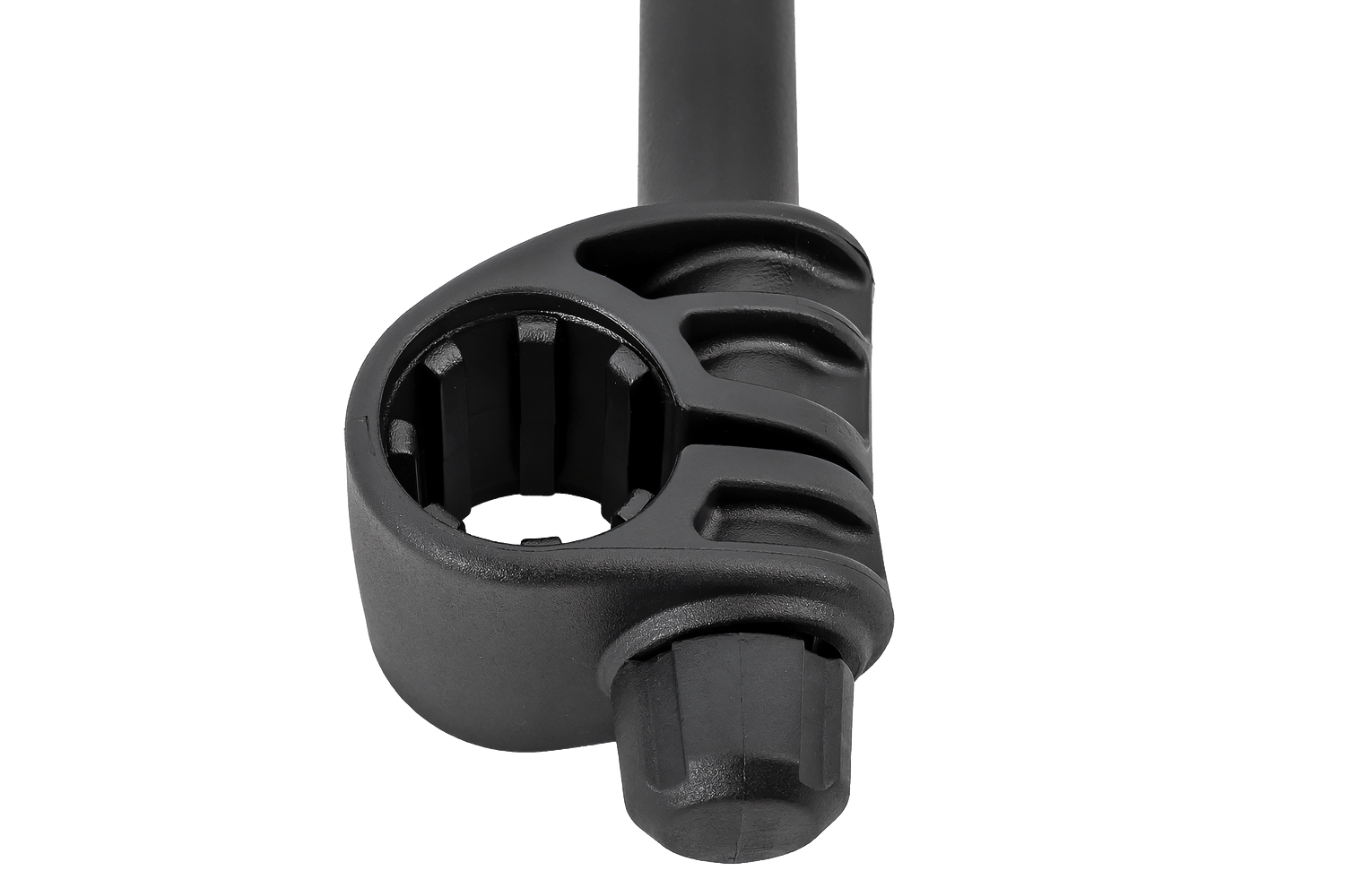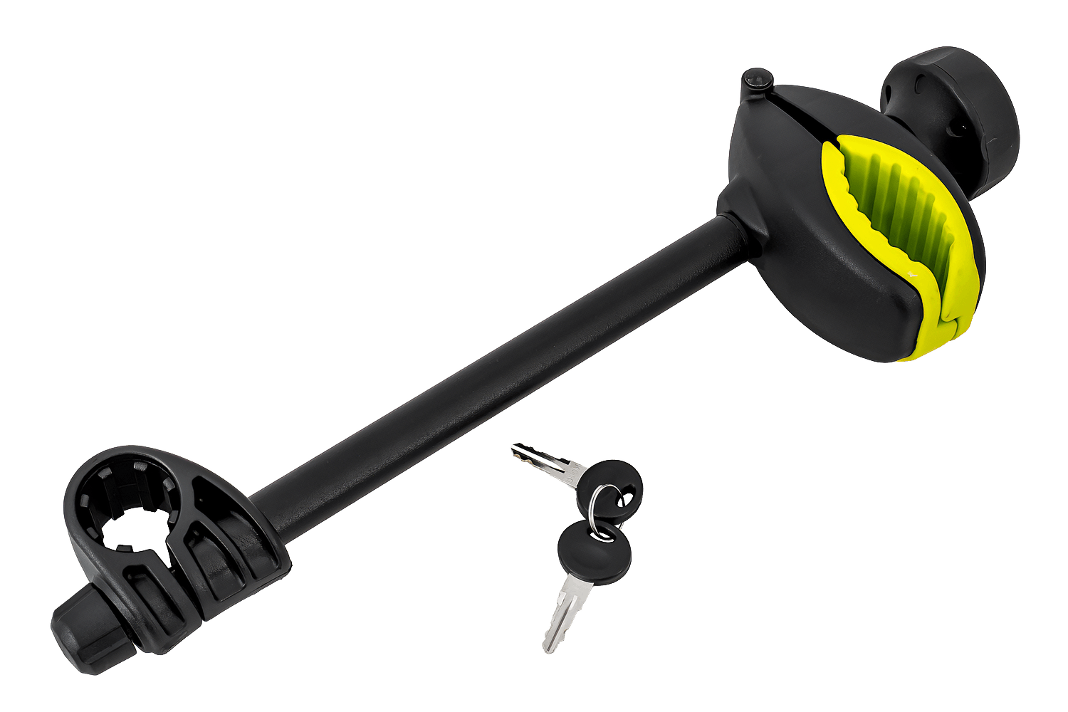 Supporto completo per telaio di bicicletta con serratura e chiavi per il portabici Inter Pack Trio. La sua lunghezza è studiata per fissare la bicicletta più vicina alla targa del portabici.