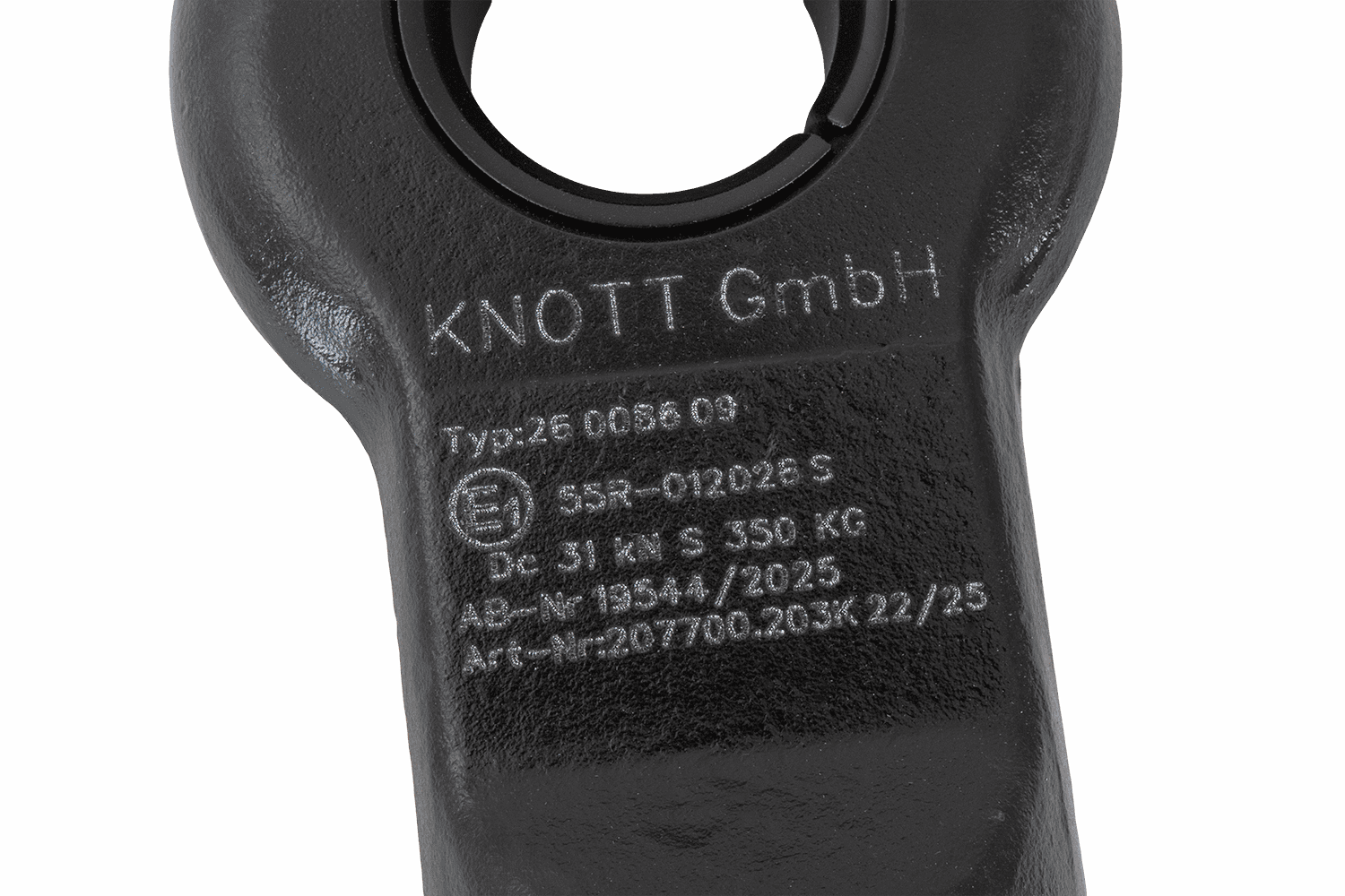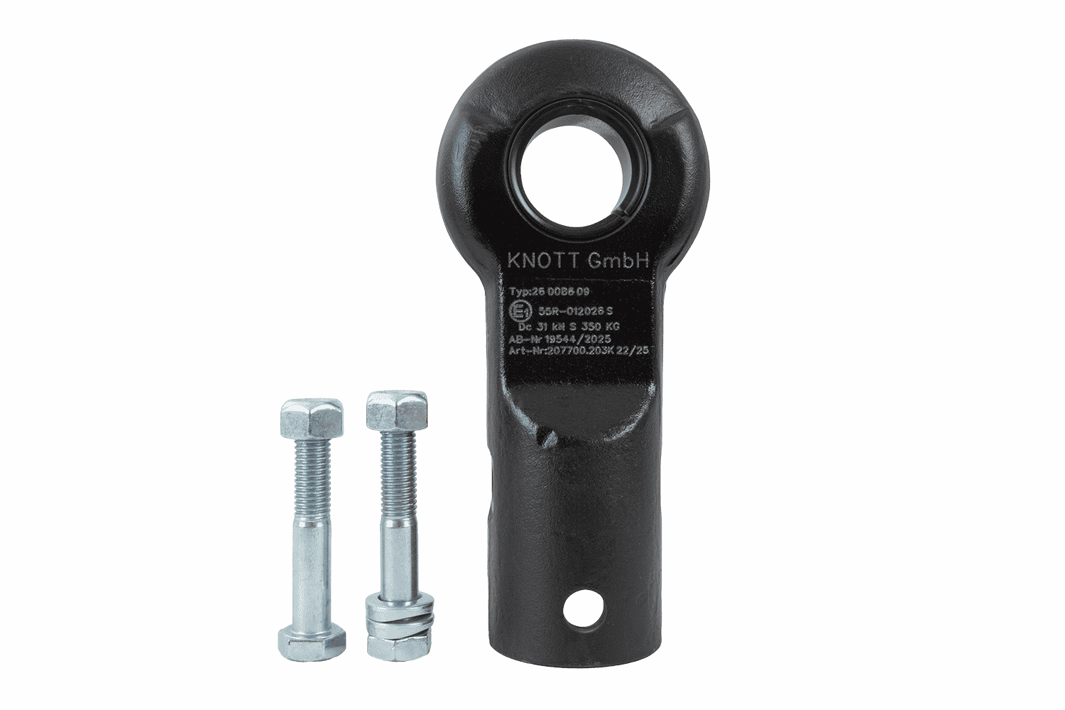 - Il gancio di traino KK7488S di KNOTT è progettato per rimorchi fino a 3500 kg. Montato su una barra di traino tubolare da 50 mm, collega saldamente il rimorchio al veicolo trainante.