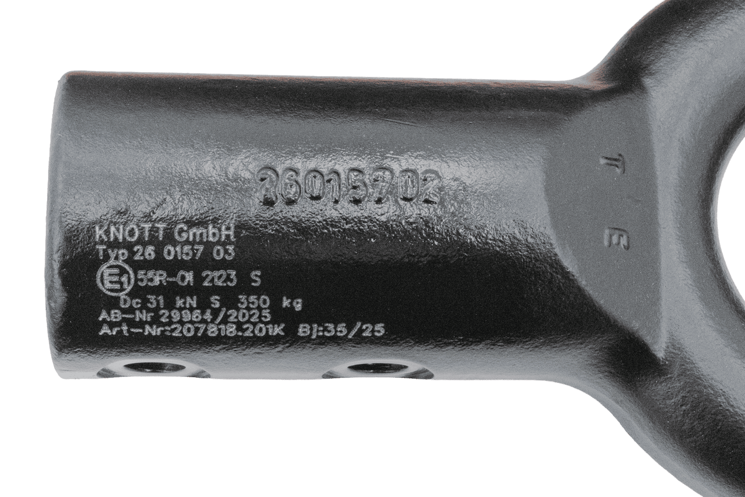 - Il gancio di traino KK7937S di KNOTT è progettato per rimorchi fino a 3.500 kg. Montato su una barra di traino tubolare da 60 mm, collega saldamente il rimorchio al veicolo trainante.