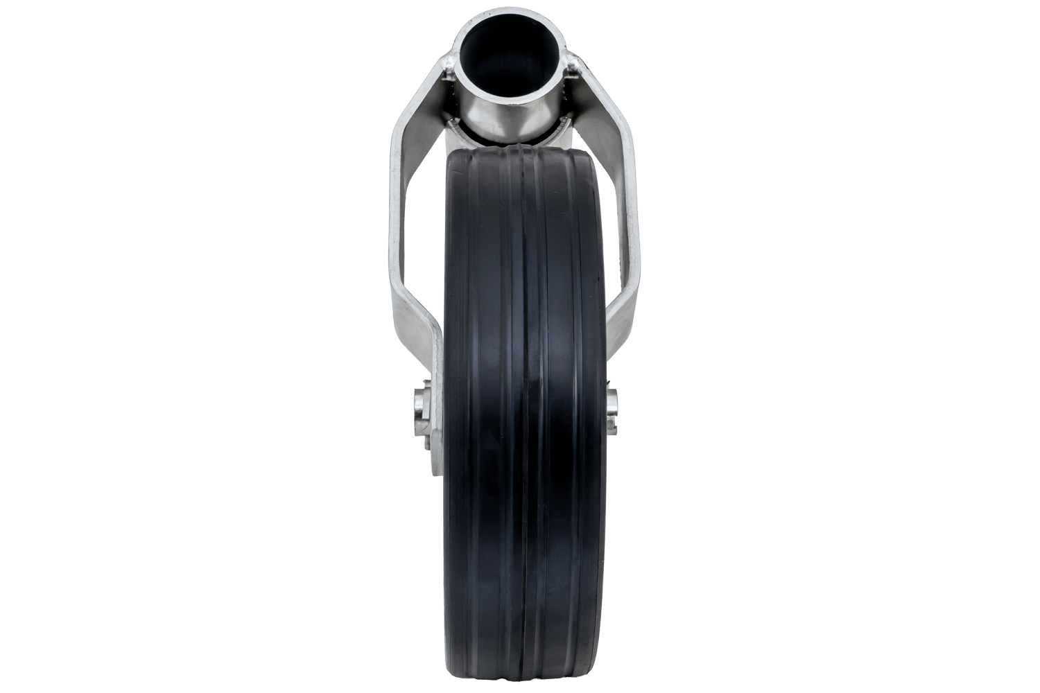 La ruota di supporto ha un diametro del tubo di 60 mm e una lunghezza di rotazione (corsa) di 230 mm . L'elemento è zincato , il che lo protegge efficacemente dalla corrosione e dalle intemperie. La ruota in gomma piena, combinata con il cerchio in acciaio, garantisce un rotolamento affidabile e una manovrabilità confortevole, anche su superfici irregolari.