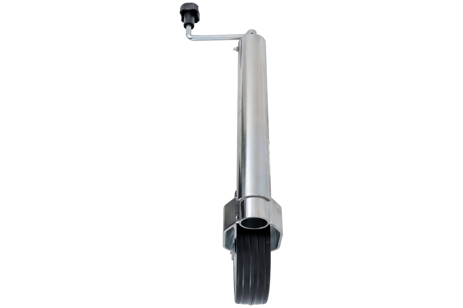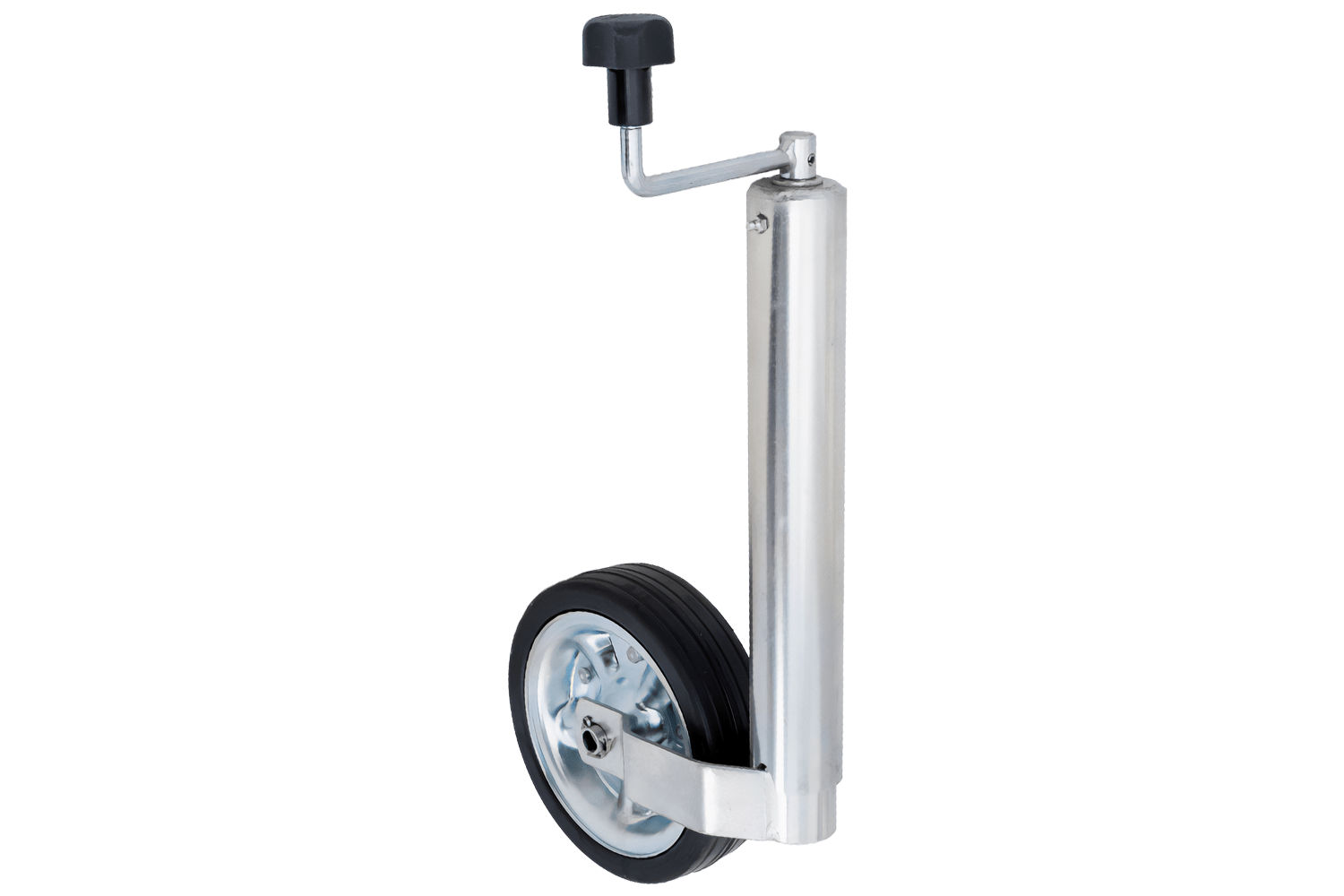 - Il ruotino di appoggio TK60, con una capacità di carico di 250 kg e un diametro del tubo di 60 mm, stabilizza il timone del rimorchio in fase di parcheggio e facilita le manovre. È ideale per rimorchi leggeri e di medie dimensioni, garantendo un rotolamen