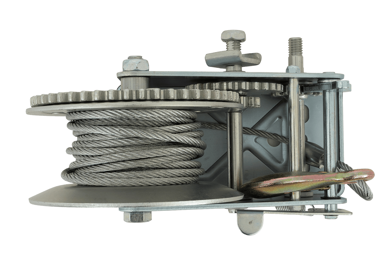 - Il verricello a fune KNOTT 6X0017.008 è un robusto verricello manuale con cavo e alloggiamento a gancio, progettato per il tiro controllato di carichi. Offre una forza di tiro di 900 kg e non dispone di freno a mano.