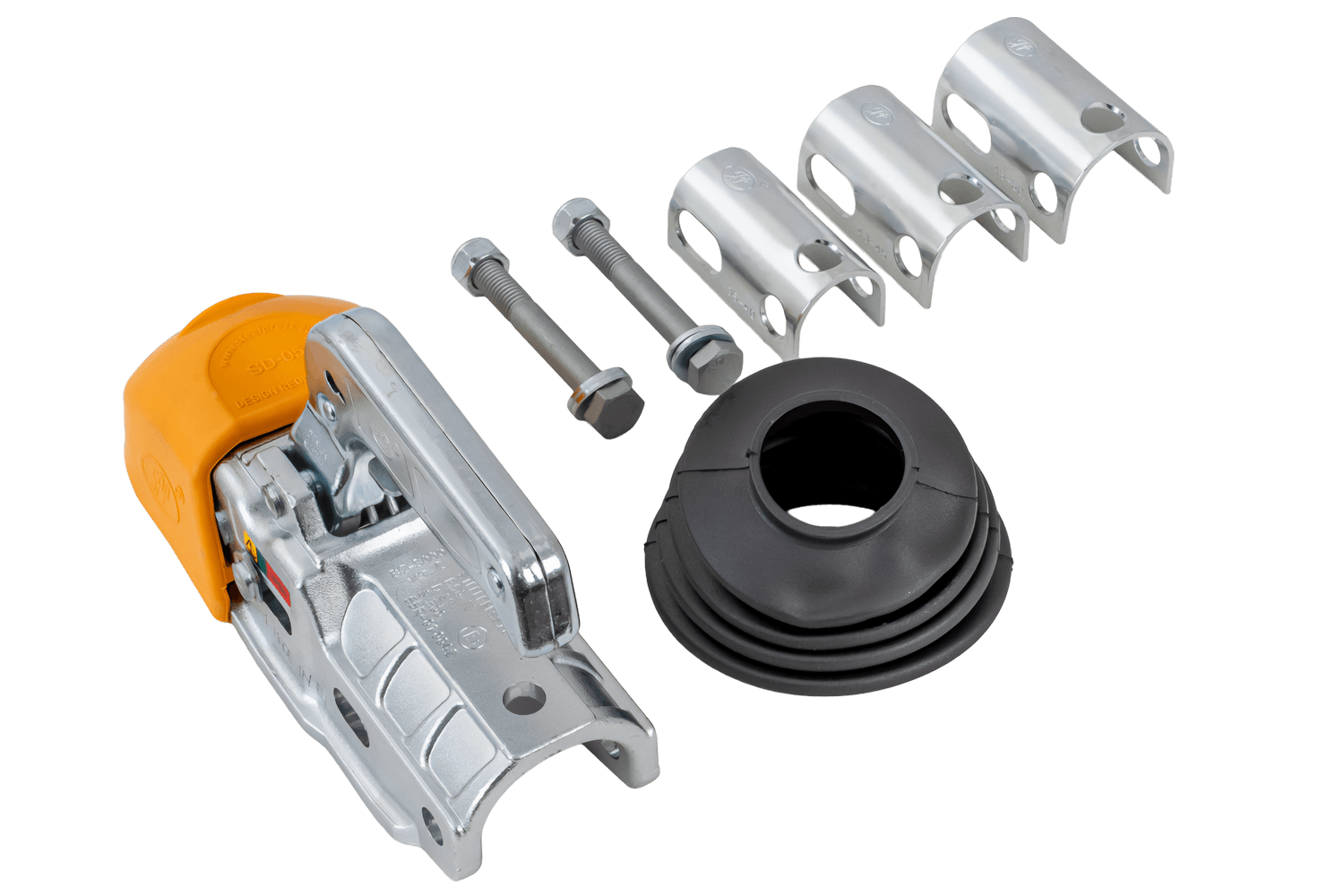 Il set è composto da: testa di accoppiamento, adattatori di riduzione, viti di montaggio, Safety Dock e copertura in gomma per il dispositivo di inerzia. Il Safety Dock protegge la parte posteriore del veicolo dai graffi e le gambe dell'utente dagli urti durante le manovre , mentre una protezione in gomma ricopre il tubo di scorrimento, proteggendo il meccanismo a repulsione da sporco e umidità. Gli adattatori rendono il gancio di traino compatibile con dispositivi a repulsione con un diametro del tubo di scorrimento da 35 mm a 50 mm .