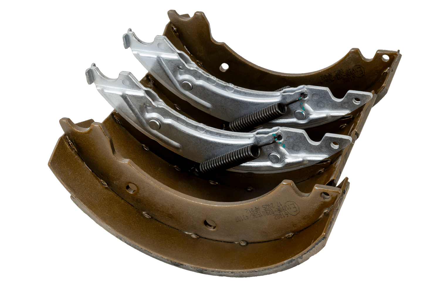 Le ganasce dei freni sono elementi di attrito che agiscono all'interno del tamburo. Durante la frenata, si espandono verso l'esterno e premono la loro guarnizione contro la superficie del tamburo, creando l'attrito necessario per decelerare . Sono utilizzate su rimorchi, macchinari e veicoli commerciali. Le ganasce usurate (guarnizione sottile, crepe, surriscaldamento, frenata irregolare) devono essere sostituite a coppie sull'assale, insieme alle molle, e dopo aver ispezionato le condizioni dei tamburi e del meccanismo di autoregolazione, per ripristinare la piena efficienza e stabilità del sistema.