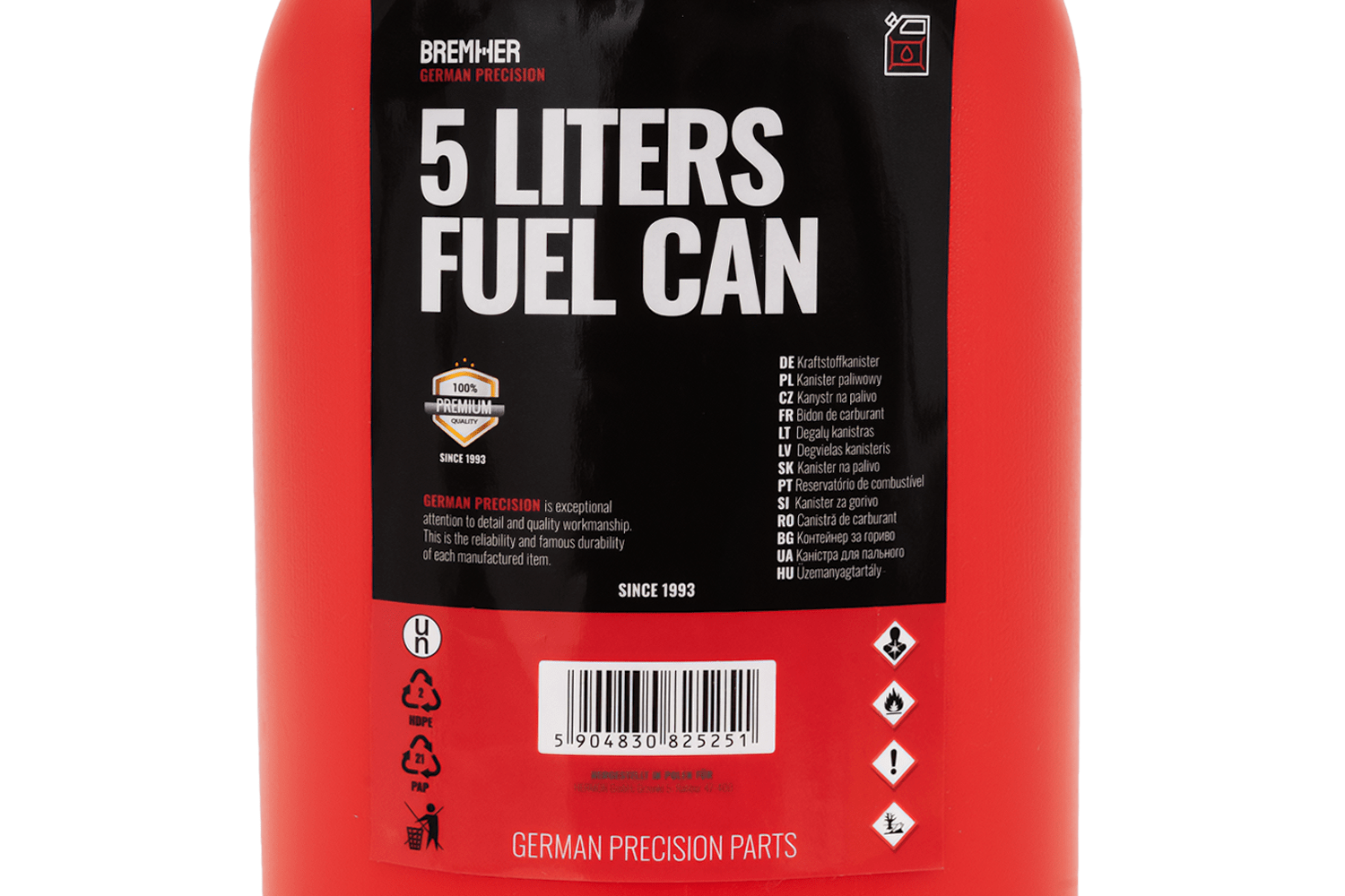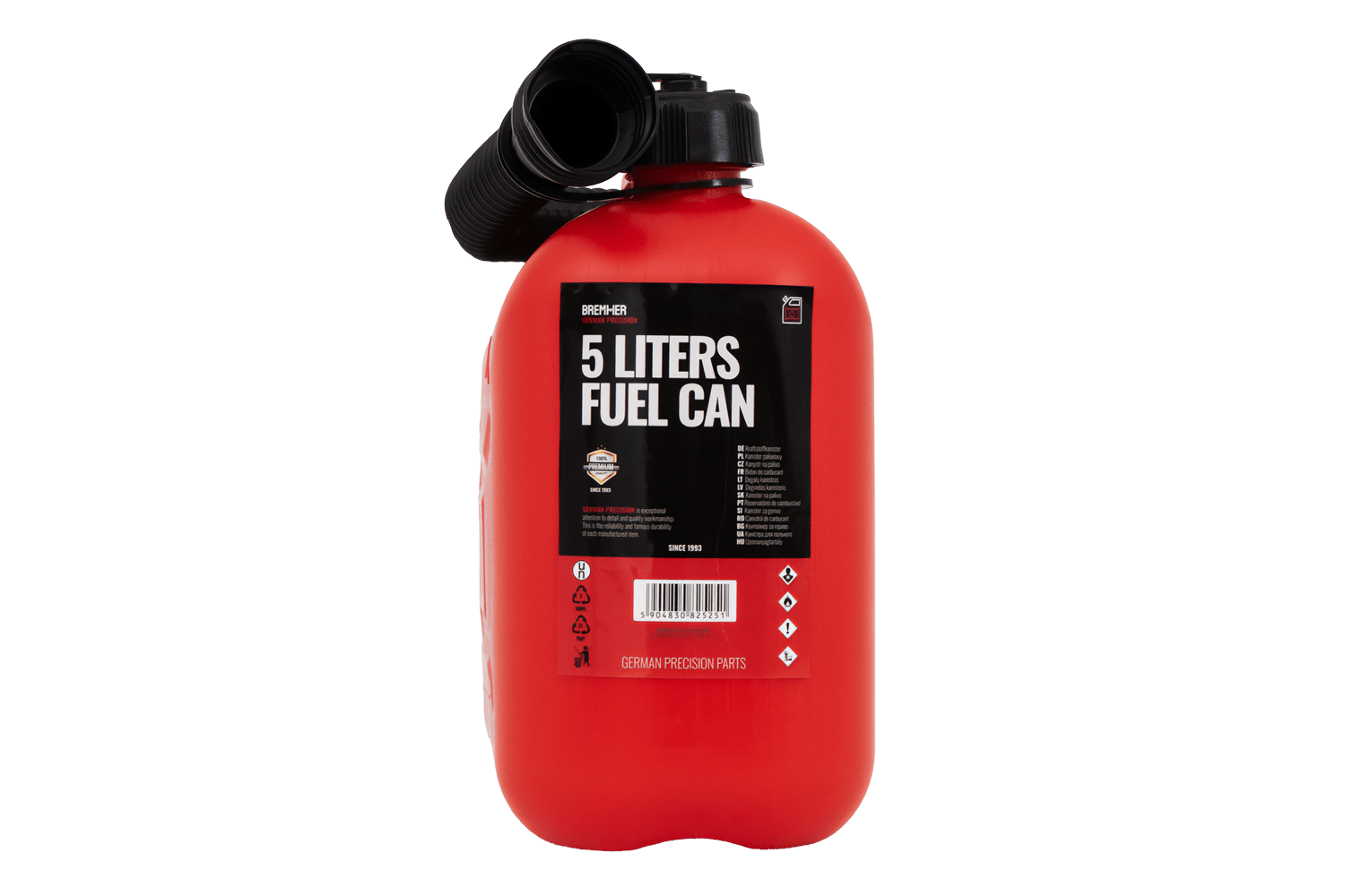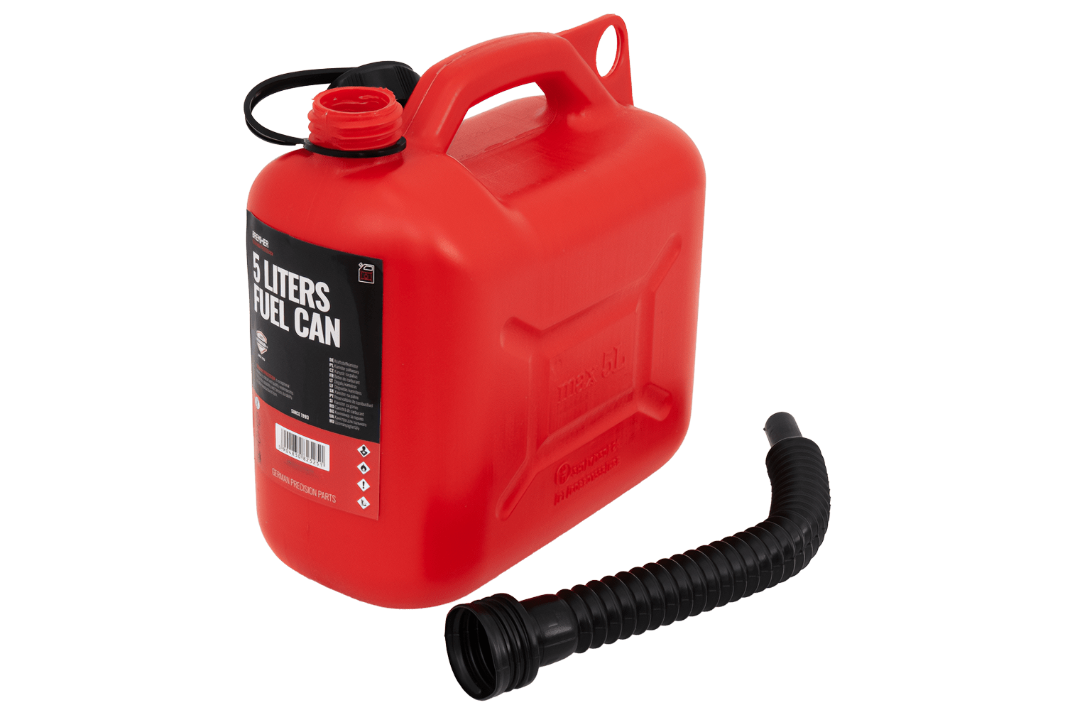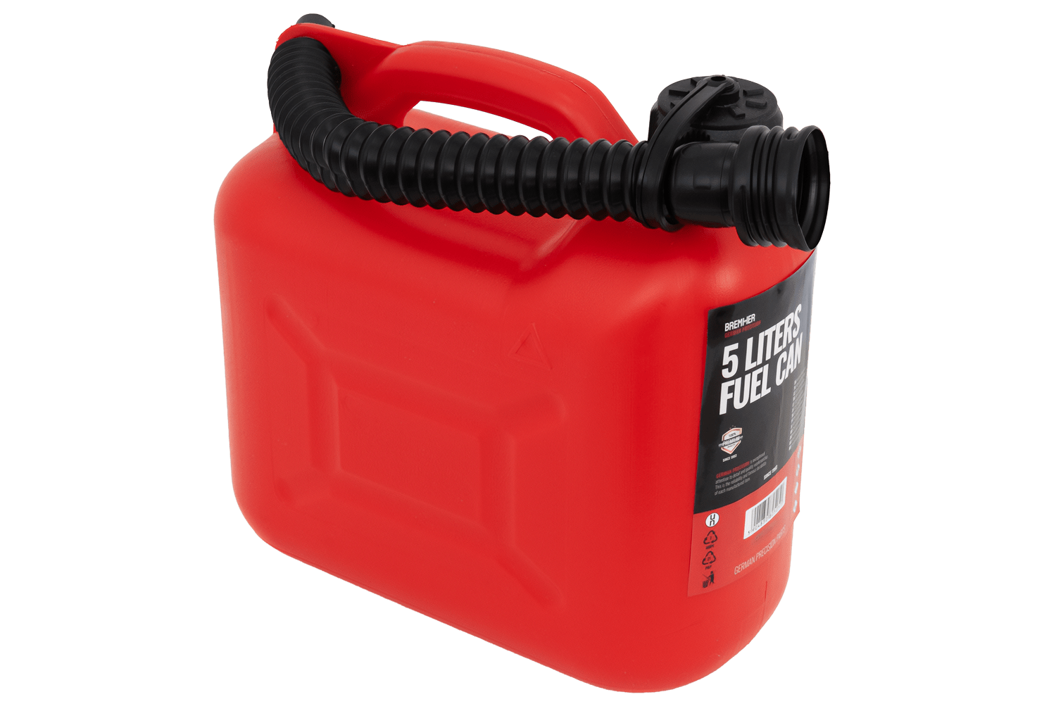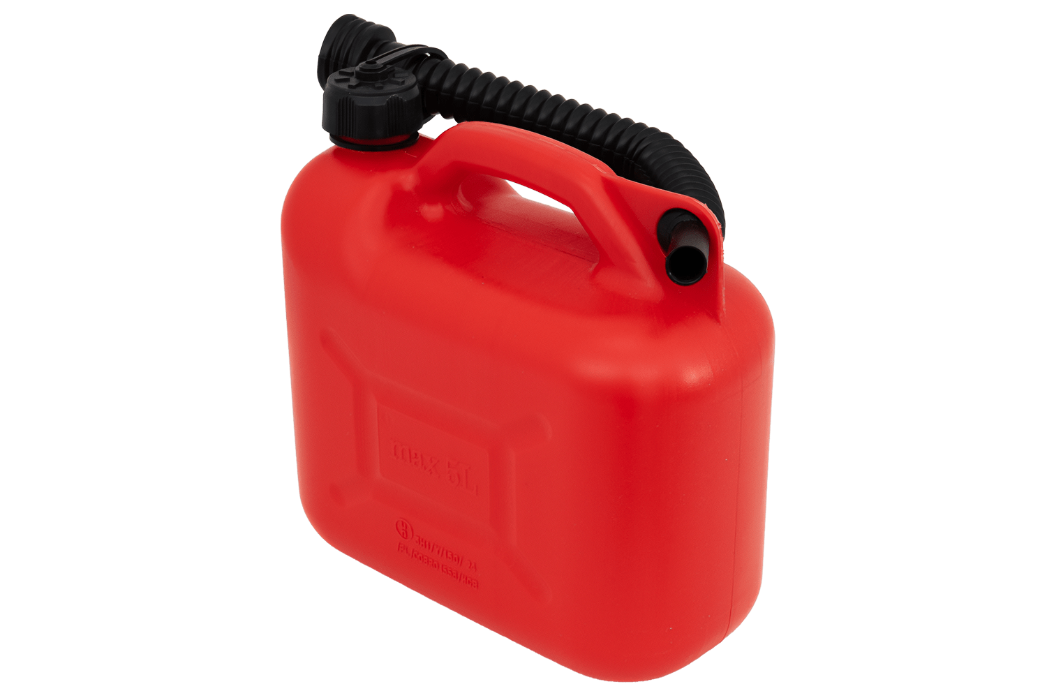 - Questa tanica in plastica HDPE da 5 litri, dotata di maniglia per il trasporto e beccuccio flessibile, facilita lo stoccaggio e il travaso del carburante in tutta sicurezza. È omologata dall'UE per il trasporto di carburanti, compresi quelli infiammabili.