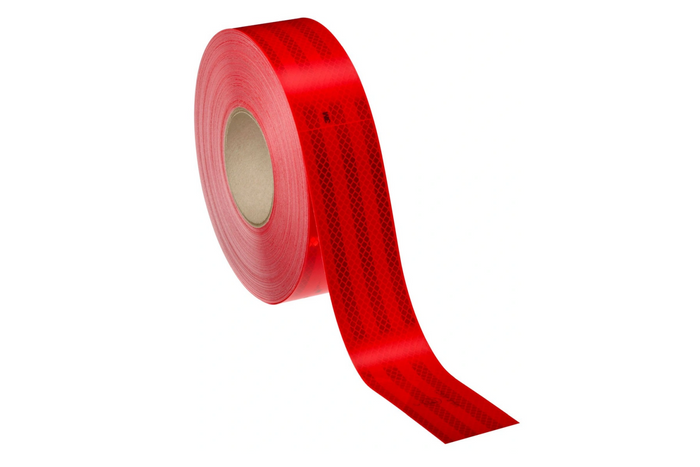 - La pellicola riflettente rossa 3M (5,5 cm x 50 m) è un nastro autoadesivo per la marcatura di camion e rimorchi. Realizzata in pellicola microprismatica, offre elevata visibilità e durata, migliorando la sicurezza stradale in tutte le condizioni.