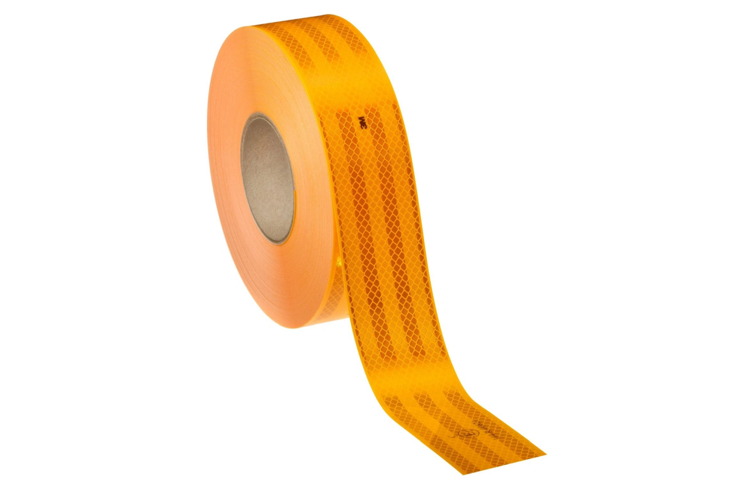- La pellicola riflettente gialla 3M (5,5 cm x 50 m) è un nastro autoadesivo per la marcatura di camion e rimorchi. Realizzata in pellicola microprismatica, offre elevata visibilità e durata, migliorando la sicurezza stradale in tutte le condizioni.