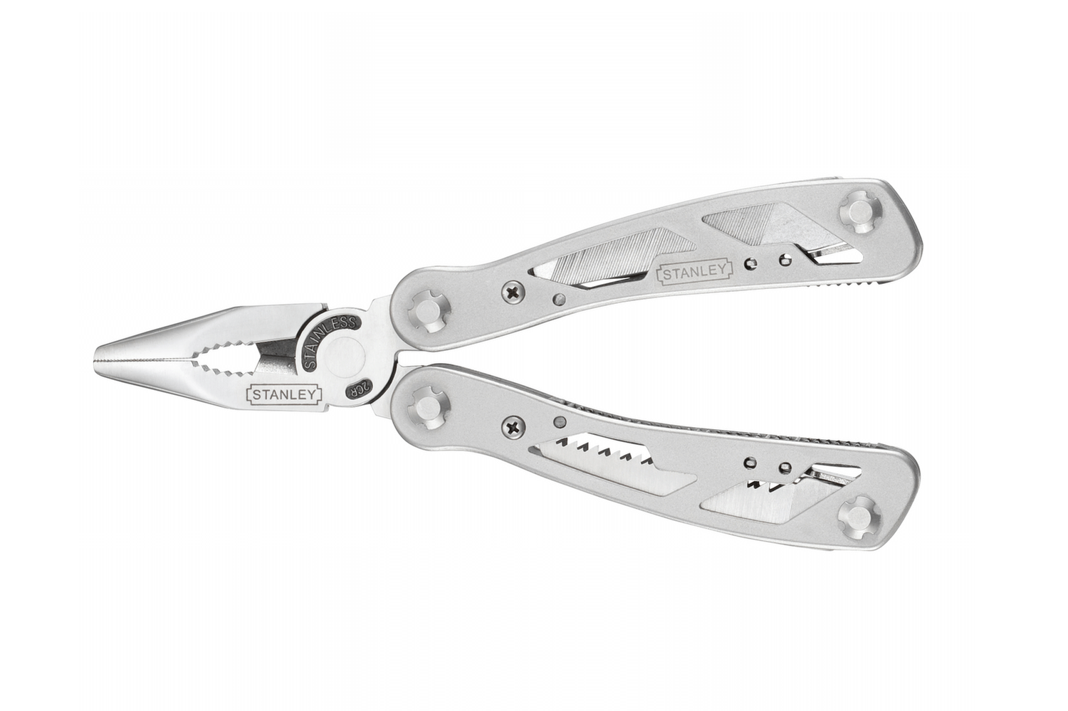 L'utensile comprende, tra gli altri , una pinza universale con ganasce seghettate e arrotondate e un tronchese, due coltelli (grande e piccolo), una lama per sega, un apribottiglie, una lima e un set di cacciaviti piatti (3, 4, 8 mm) e una chiave Phillips PH1 .