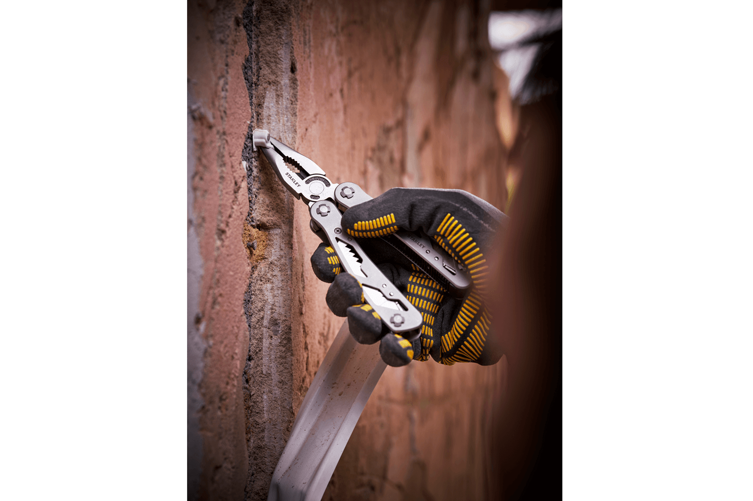 Il Multi-Tool 12 in 1 è uno strumento pratico, compatto e affidabile che combina 12 funzioni di uso frequente in un unico design robusto. Con una lunghezza di 212 mm e un design pieghevole, il Multi-Tool è ideale per ogni situazione. Realizzato in acciaio inossidabile di alta qualità , garantisce durata, resistenza alla corrosione e lunga durata anche in caso di uso intensivo. È incluso un fodero per riporlo comodamente e indossarlo alla cintura.