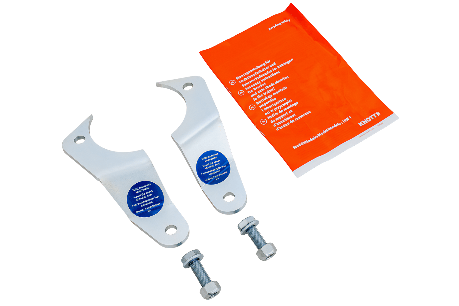Le staffe garantiscono un montaggio stabile e sicuro degli ammortizzatori , smorzando efficacemente le vibrazioni e migliorando il comfort e la sicurezza di guida. Un montaggio corretto riduce l'usura dei componenti delle sospensioni come molle, boccole e assali, prolungandone la durata. Grazie alla loro struttura robusta e alla piena compatibilità con le soluzioni KNOTT, il kit garantisce durata, affidabilità e compatibilità con i sistemi di primo equipaggiamento. È la soluzione ideale per gli utenti di rimorchi, rimorchi e macchine agricole ed edili che apprezzano precisione, sicurezza e funzionamento a lungo termine.