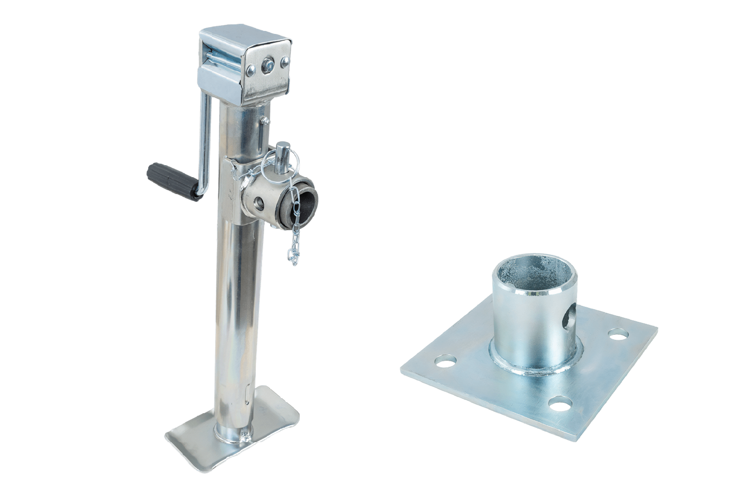- Il kit di supporto e adattatore per manovella ha una capacità di carico massima di 1300 kg ed è regolabile da 220 a 370 mm. È la soluzione ideale per gli utilizzatori di macchine agricole ed edili, nonché di rimorchi da trasporto e da campeggio.