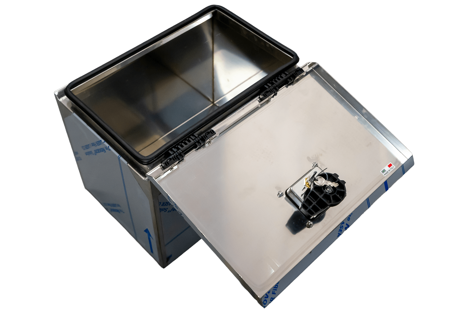 La scatola è realizzata in acciaio inossidabile lucidato , eccezionalmente durevole, esteticamente gradevole e resistente alla corrosione. È dotata di una chiusura NextT in acciaio inossidabile, che garantisce una chiusura sicura e una maggiore protezione del contenuto. La struttura della scatola è resistente alle vibrazioni e agli urti , rendendola ideale per un uso intensivo in condizioni difficili. Il coperchio della scatola è dotato di una guarnizione che garantisce una tenuta stagna completa, impedendo all'acqua e alla polvere di penetrare all'interno . Questo design protegge efficacemente gli utensili e le attrezzature riposti da fattori esterni dannosi, il che è particolarmente importante per l'uso intensivo in cantieri edili o in condizioni meteorologiche avverse.