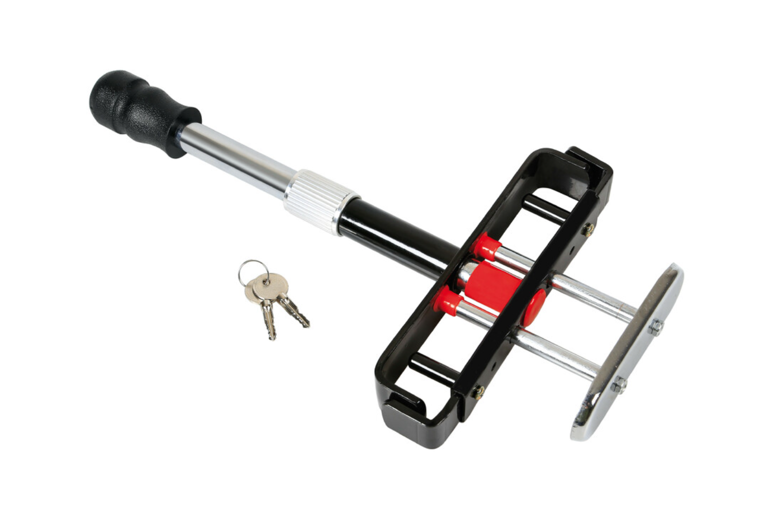 Il blocca pedale antifurto è un efficace blocca pedale antifurto per auto che impedisce l'uso del freno o della frizione , impedendo di fatto la guida. Dotato di un meccanismo di regolazione della larghezza , si adatta alla maggior parte delle auto, dalle piccole autovetture ai modelli più grandi.
