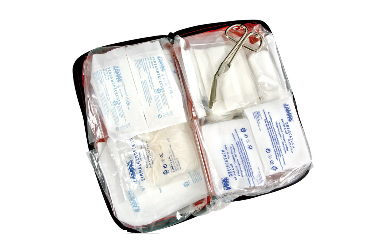 Il Kit di Pronto Soccorso - Custodia in Nylon offre un equipaggiamento di primo soccorso pratico e completo in una resistente custodia in nylon con cerniera. Il suo design compatto consente di riporlo facilmente nel bagagliaio o sotto un sedile, garantendo un rapido accesso in caso di emergenza. Il kit soddisfa i requisiti della norma DIN 13164:2022 e include bende elastiche, cerotti, una coperta di emergenza, forbici e istruzioni di primo soccorso. Tutti i componenti sono stati accuratamente selezionati per fornire un trattamento efficace per ferite e tagli.