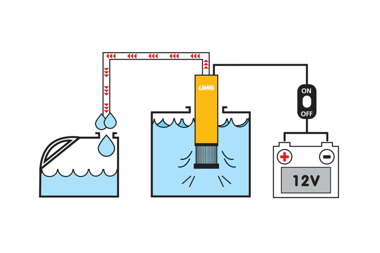 - Questa pompa sommersa da 12 V e 50 W consente un rapido trasferimento dell'acqua con una portata di 30 l/min. L'alloggiamento in alluminio, il filtro esterno e l'interruttore on/off garantiscono praticità e durata. Ideale per giardinaggio, campeggio, naut