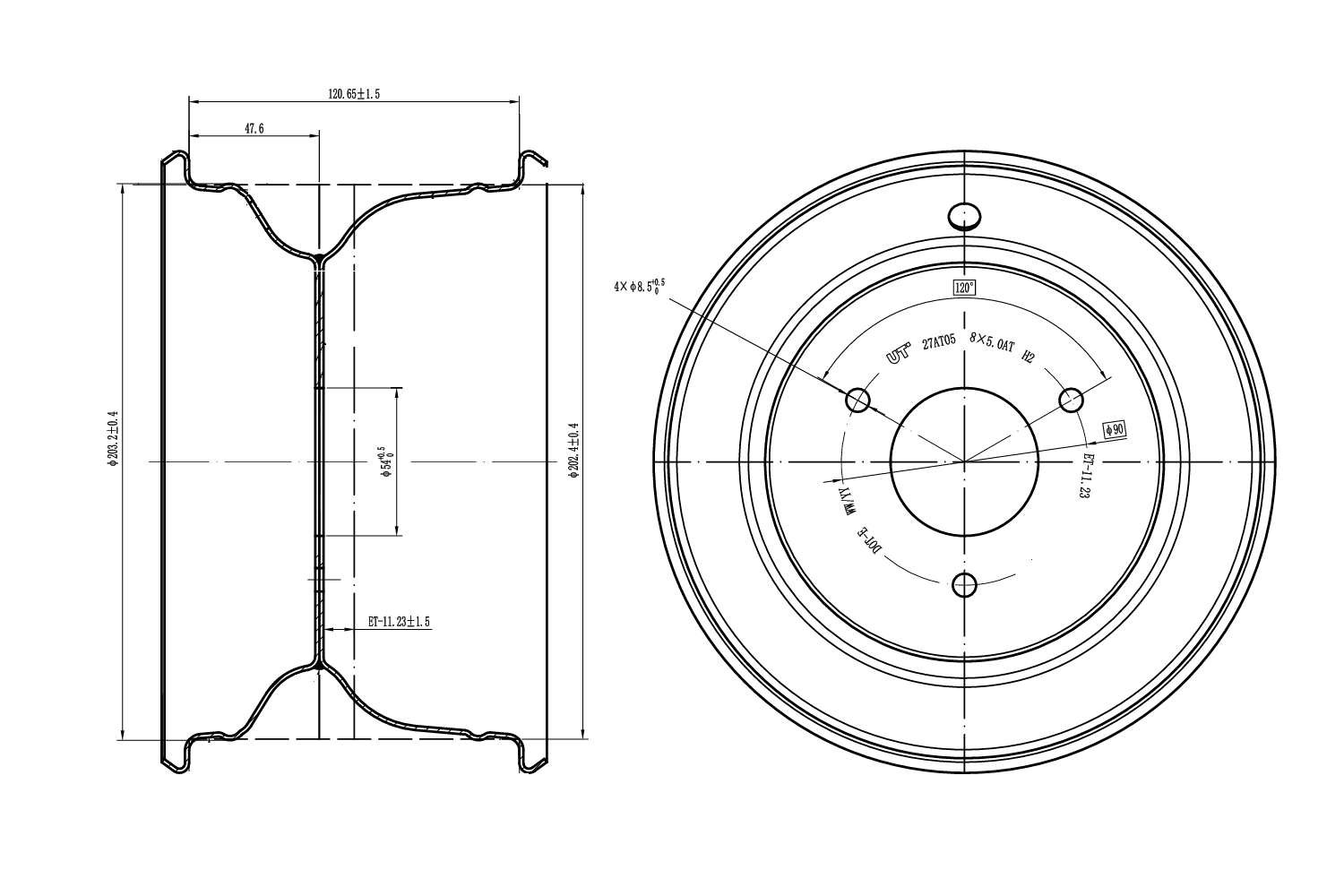 Cerchio in acciaio UNITRAILER nero 5ATx8"H2 3x90 ET:-11.23