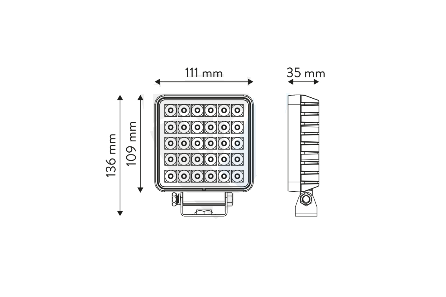 - La lampada da lavoro quadrata TT.13308-W di TT TECHNOLOGY ha una potenza di 30 W e genera 2.400 lumen di luce bianca neutra (5.700 K). Dotata di 30 LED, è ideale per macchine agricole, macchine edili e veicoli commerciali.