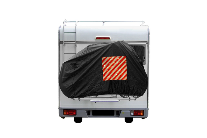 - Questa copertura per portabici posteriore per 2 bici protegge da pioggia, neve e sporco. Dotata di cordino di tensione, ganci e tasca per un cartello di segnalazione di 50 x 50 cm. Progettata per camper e roulotte.